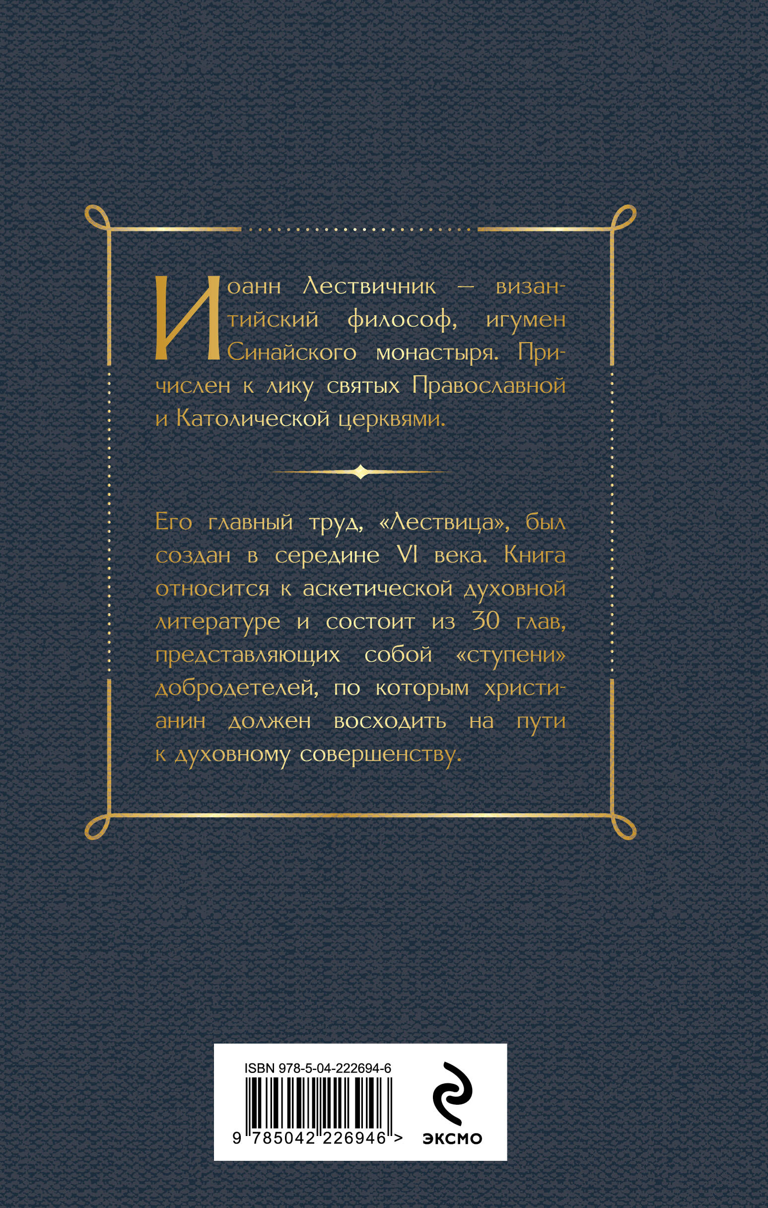 Иоанн Лествичник - византийский философ, игумен Синайского монастыря. Причислен к лику святых Православной и Католической церквями. Его главный труд, «Лествица», был создан в середине VI века по просьбе Иоанна, игумена Раифского монастыря. Книга относится к аскетической духовной литературе и состоит из 30 глав, представляющих собой «ступени» добродетелей, по которым христианин должен восходить на пути к духовному совершенству. Число ступеней символично: тридцать лет - возраст, в котором Иисус Христос начал свое общественное служение. Образ отсылает к библейскому видению Иакова, которому явилась лестница, достигающая неба, по которой восходят и нисходят ангелы, а наверху стоит Сам Господь.