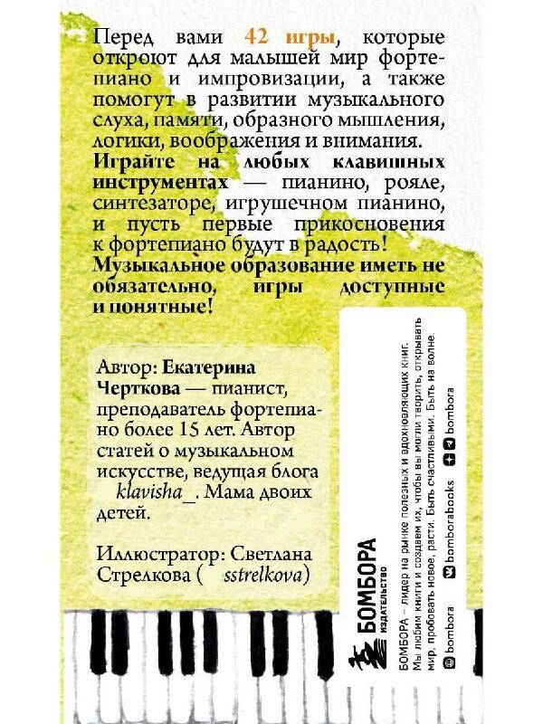 Аннотация: Малыши и клавиши. 42 развивающие игры на фортепиано. От 1 года до 4 лет