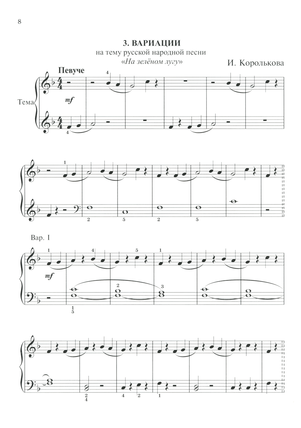 Сборник позволяет решить проблему дефицита произведений крупной формы для формирования учебного и концертного репертуара начинающих пианистов. Он предназначен ученикам фортепианного отделения подготовительного, первого и второго классов ДМШ и ДШИ, а также может быть рекомендован ученикам других специальностей в рамках предмета «Общее фортепиано». Жанр вариаций - наиболее понятный и удобный для знакомства с крупной формой. Пьесы, составляющие сборник, написаны на темы известных песен, удобных для запоминания. Они отличаются доступным изложением, мелодичностью, компактностью. Вариации в сборнике расположены в порядке возрастающей сложности.| Издательство | Феникс |