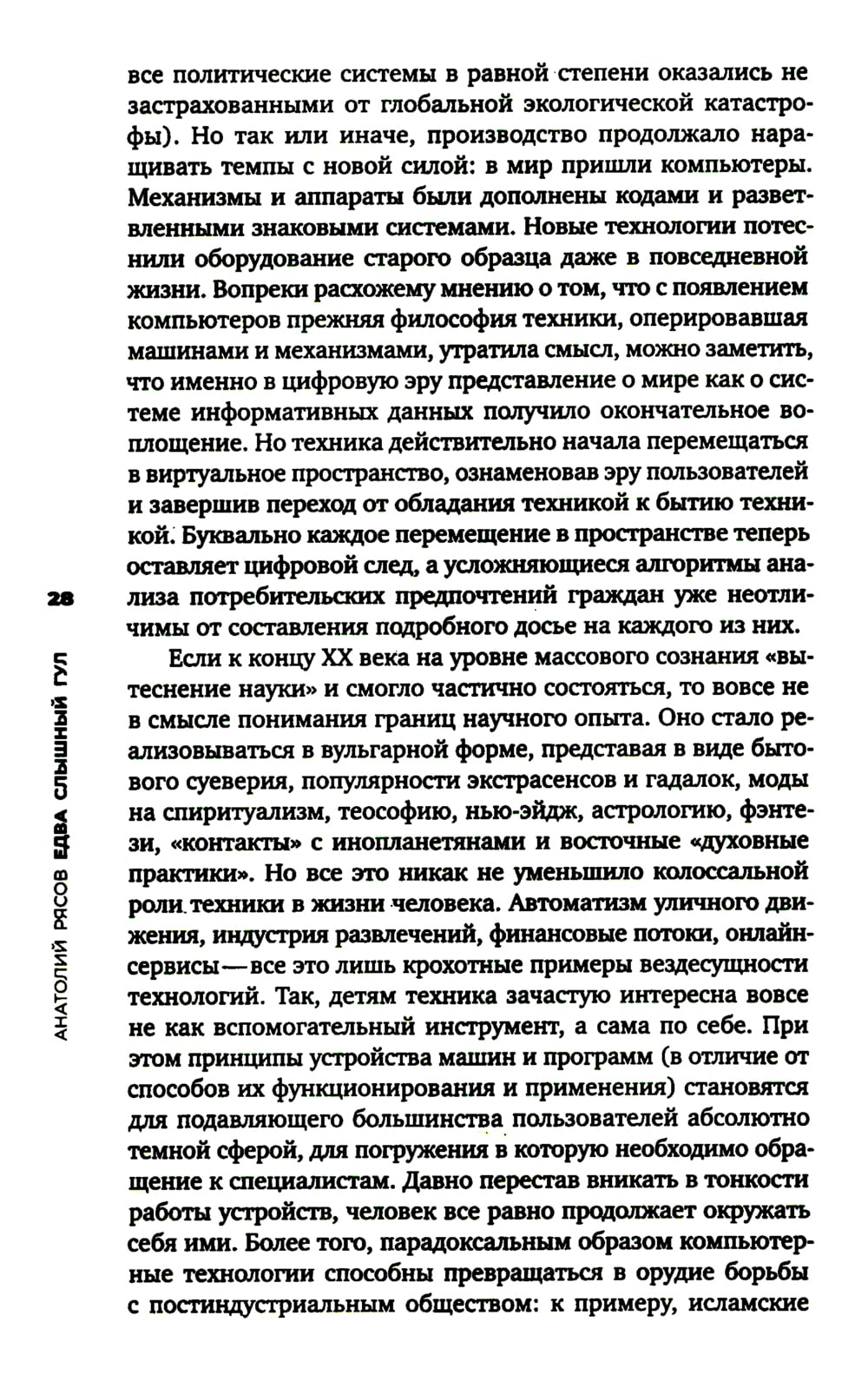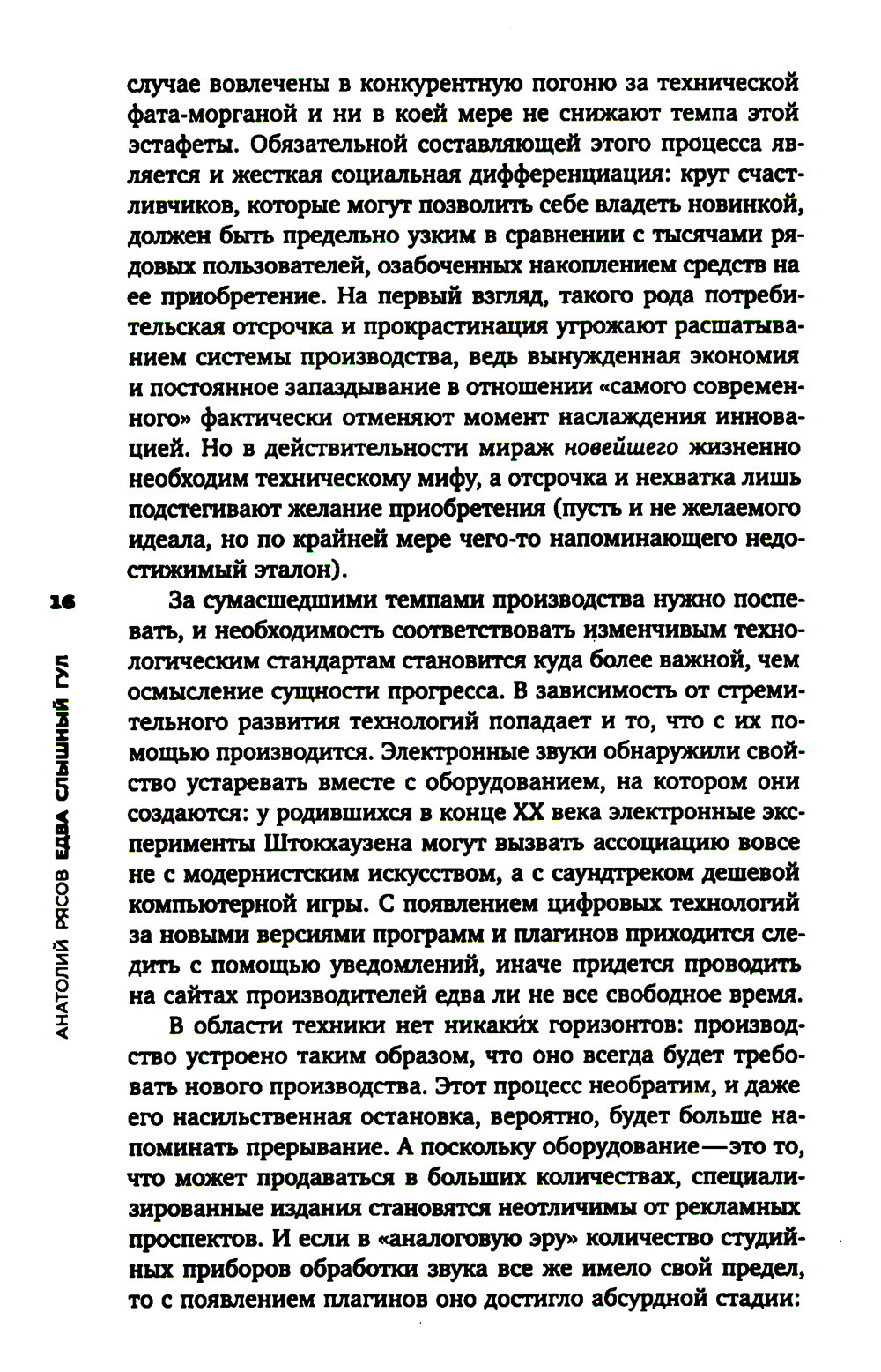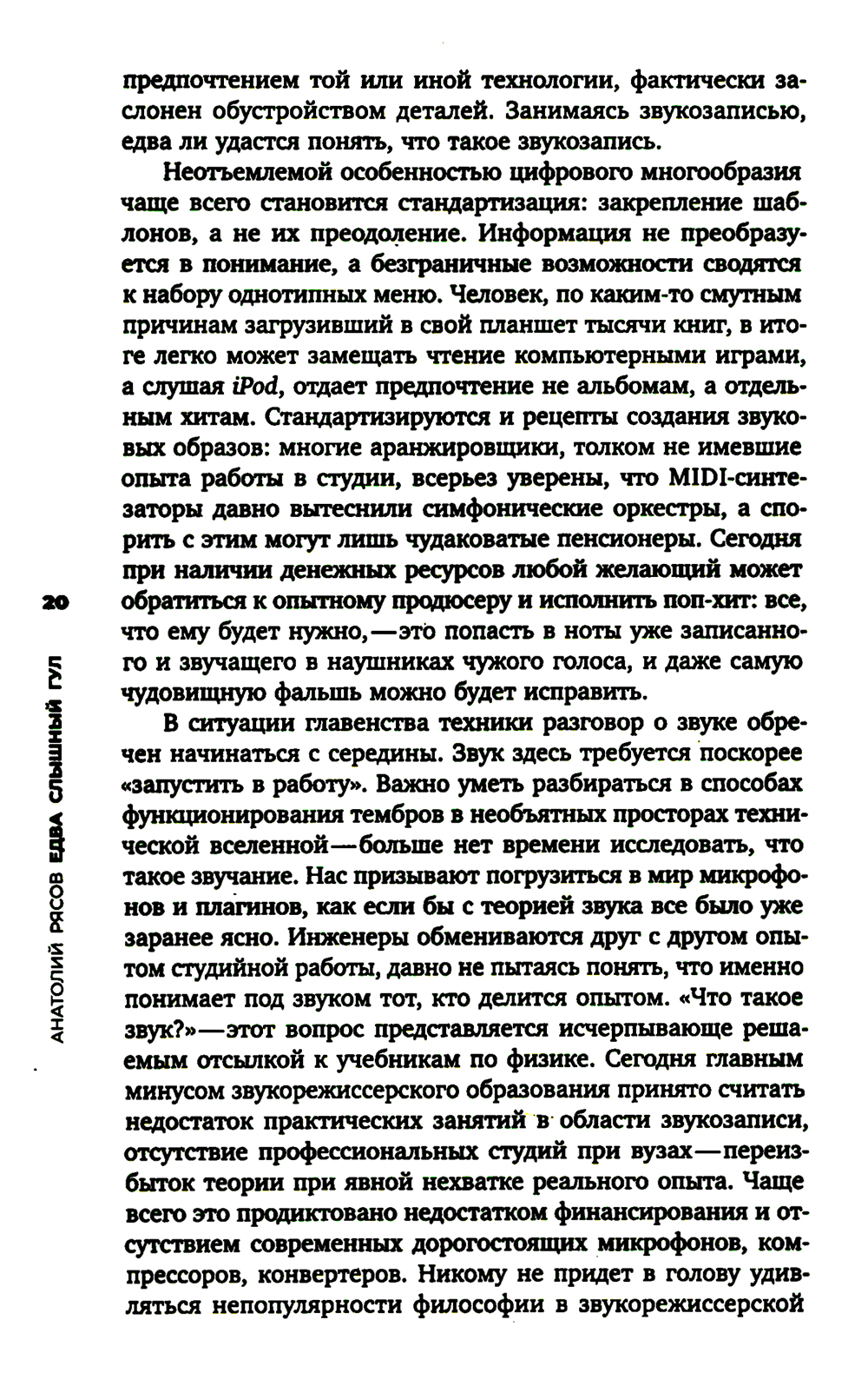 Что нового можно «услышать», если прислушиваться к звуку из пространства философии? Почему исследование проблем звука оказалось ограничено сферами науки и искусства, а чаще и вовсе не покидает территории техники? Эти вопросы стали отправными точками книги Анатолия Рясова, исследователя, сочетающего философский анализ с многолетней звукорежиссерской практикой и руководством музыкальными студиями киноконцерна «Мосфильм». Обращаясь к концепциям Мартина Хайдеггера, Жака Деррида, Жан-Люка Нанси и Младена Долара, автор рассматривает звук и вслушивание как точки пересечения семиотического, психоаналитического и феноменологического дискурсов, но одновременно - как загадочные лакуны в истории мысли. Избранная проблематика соотносится с областью звуковых исследований, но выводы работы во многом формулируются в полемике с этим направлением гуманитарной мысли. При этом если sound studies, теории медиа, увлечение технологиями и выбраны здесь в качестве своеобразных «мишеней», то прежде всего потому, что задачей исследования является поиск их онтологического фундамента. По ходу работы автор рассматривает множество примеров из литературы, музыки и кинематографа, а в последней главе размышляет о тайне притягательности раннего кино и массе звуков, скрываемых его безмолвием.| Издательство | Новое литературное обозрение |