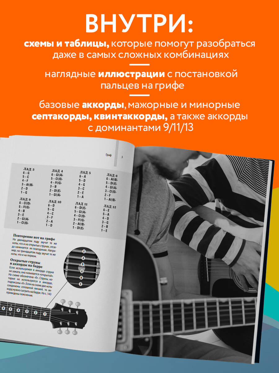 Давно мечтали научиться играть на гитаре или стремитесь развить свой навык? Полный каталог аккордов для игры на гитаре - ваш проводник в мир музыки! На страницах этой книги: - аппликатуры самых популярных аккордов: от базовых аккордов до септаккордов и квинтаккордов; - понятные таблицы и схемы; - наглядные иллюстрации с расположением пальцев на гитарном грифе. Удобный формат и мягкая обложка позволят брать книгу с собой и практиковаться в любое удобное время, а наглядные схемы и иллюстрации помогут разобраться в самых сложных, на первый взгляд, комбинациях. Сделайте свой шаг на пути к совершенствованию навыка игры на гитаре!| Издательство | ООО "Издательство "Эксмо" |