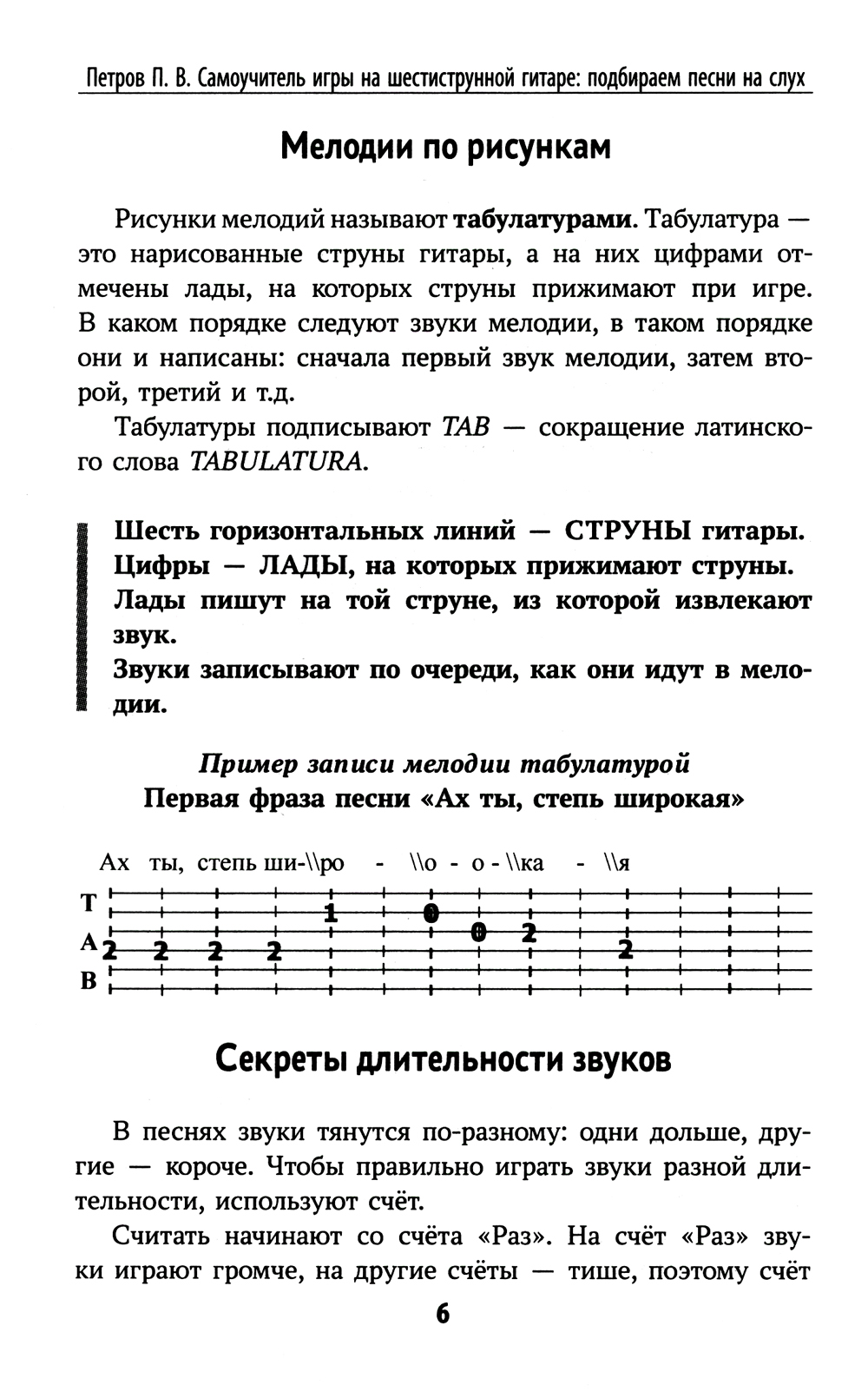 Аннотация: Самоучитель игры на шестиструнной гитаре. Подбираем песни