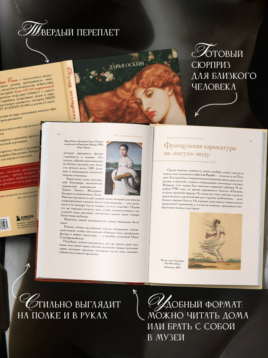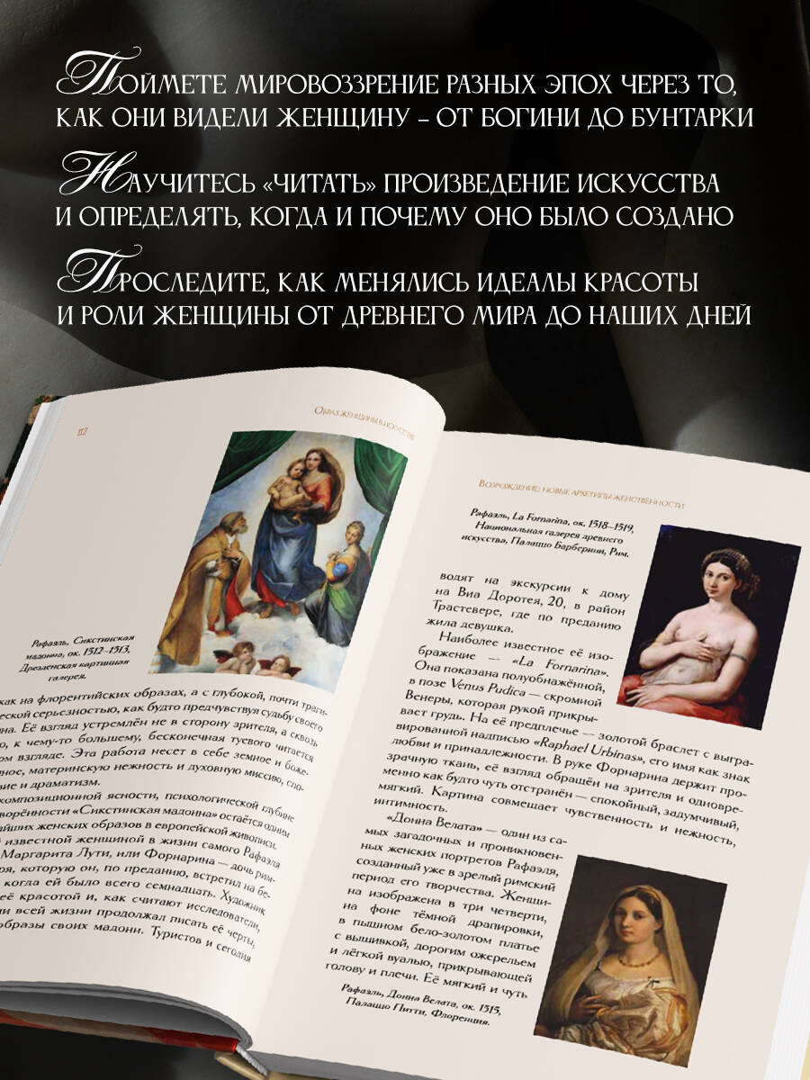 «Образ женщины в искусстве. Как менялся идеал от Нефертити до Марлен Дитрих» - это путешествие по векам, в котором искусствовед Дарья Оскин раскрывает, как менялся идеал женской красоты и что ценилось в женщине в разные эпохи. Автор - искусствовед международного уровня, автор блога @daria.oskin, лектор и писатель, получила образование в сфере истории искусств в нескольких европейских странах, а также сотрудничала с одним из старейших музеев мира - Лувром. В этой книге Дарья Оскин изящно и подробно описывает, как менялся идеал женщины от Древнего Египта до XX века, приводит примеры красавиц с полотен зарубежных музеев, таких как «Рождение Венеры» Боттичелли, «Мона Лиза» Леонардо да Винчи, «Купальщицы» Ренуара, чтобы показать, насколько разной была женская красота в разные эпохи. Большое количество иллюстраций позволяет прочувствовать трансформацию идеала женщины и не только узнать об истории женского образа в искусстве, но и проследить, как в работах великих мастеров менялся взгляд на женщину - от идеализированного образа до живого и индивидуального.