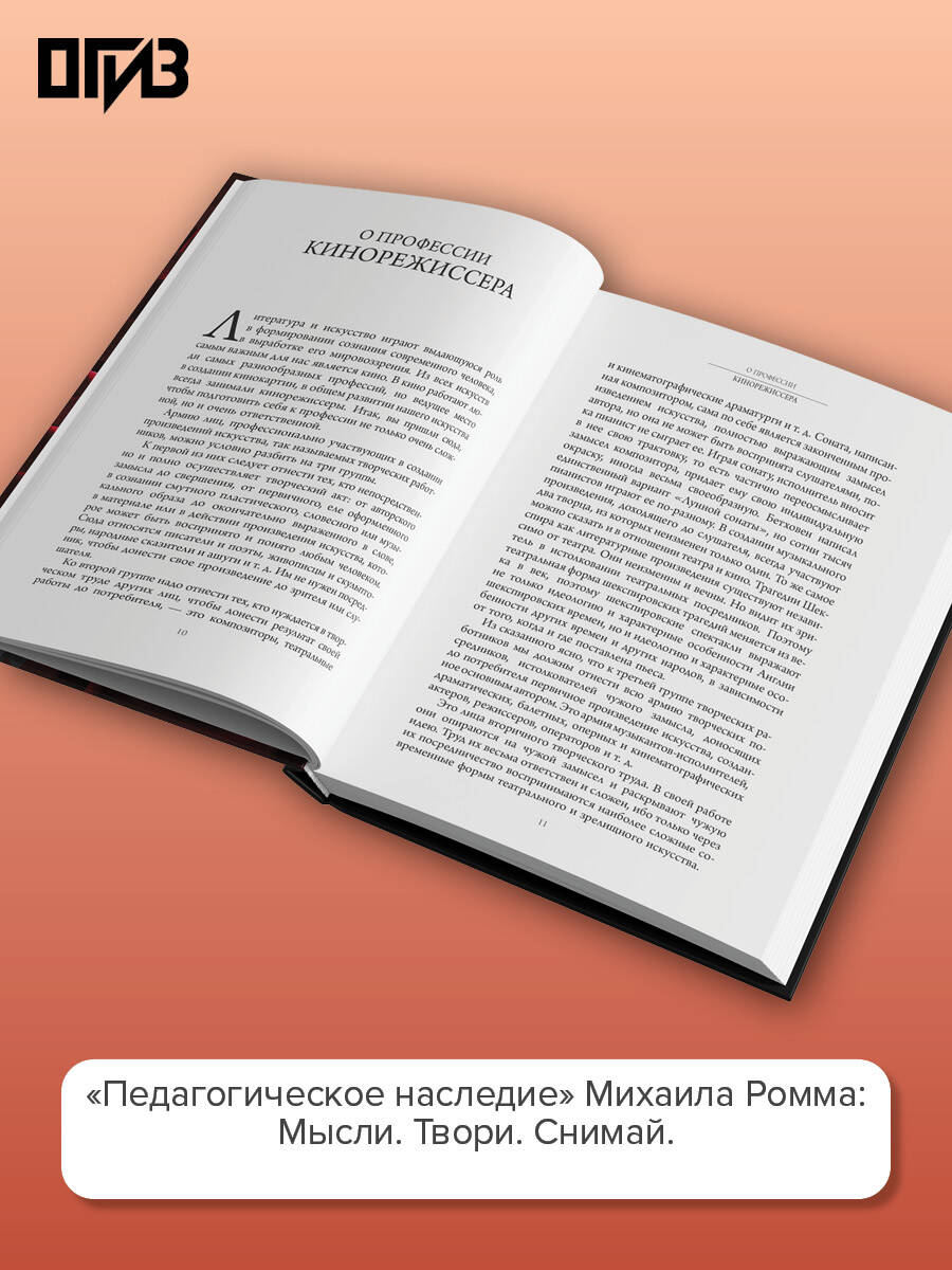Михаил Ильич Ромм (1901-1971) - выдающийся советский кинорежиссер, сценарист, профессор ВГИКа и общественный деятель. Эта книга - живой, дышащий диалог мастера со своими учениками, в котором раскрываются самые сокровенные тайны профессии кинорежиссера. Михаил Ромм не читает сухих наставлений - он мыслит вслух, спорит с классиками (Пушкиным, Толстым, Чеховым), разбирает сцены "Войны и мира" как режиссерские сценарии, учит видеть монтаж в литературе и превращать любой текст в кинематографическое зрелище. В центре его внимания - не ремесло как таковое, а профессия мышления: как осмыслить замысел и донести его до актера, как заставить работать каждый кадр. Ромм убежден: хороший режиссер - прежде всего знаток жизни, собиратель наблюдений, читатель литературы и исследователь эпохи. Книга включает не только лекции, но и диалоги с коллегами (в том числе с Сергеем Герасимовым), размышления о будущем учебника кинорежиссуры, откровения о собственных фильмах и признания в трудностях творческого пути. Через все проходит главная мысль: кинематограф - это развитие мысли через образ, и только глубоко осмысленное зрелище может стать настоящим искусством. Книга будет интересна студентам киношкол, режиссерам, сценаристам, актерам - и всем, кто хочет понять, как рождается сильное кино. Это не учебник в привычном смысле, а мастер-класс от одного из величайших умов советского кинематографа, актуальный и сегодня.| Издательство | Издательство "АСТ" |