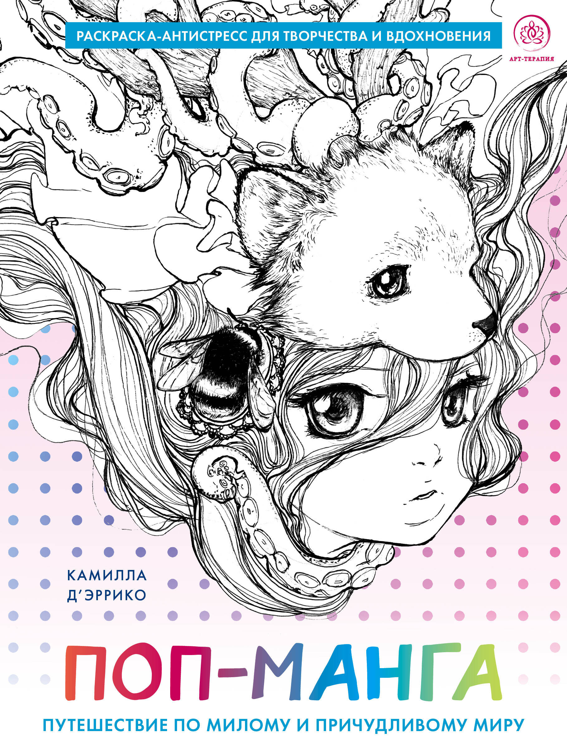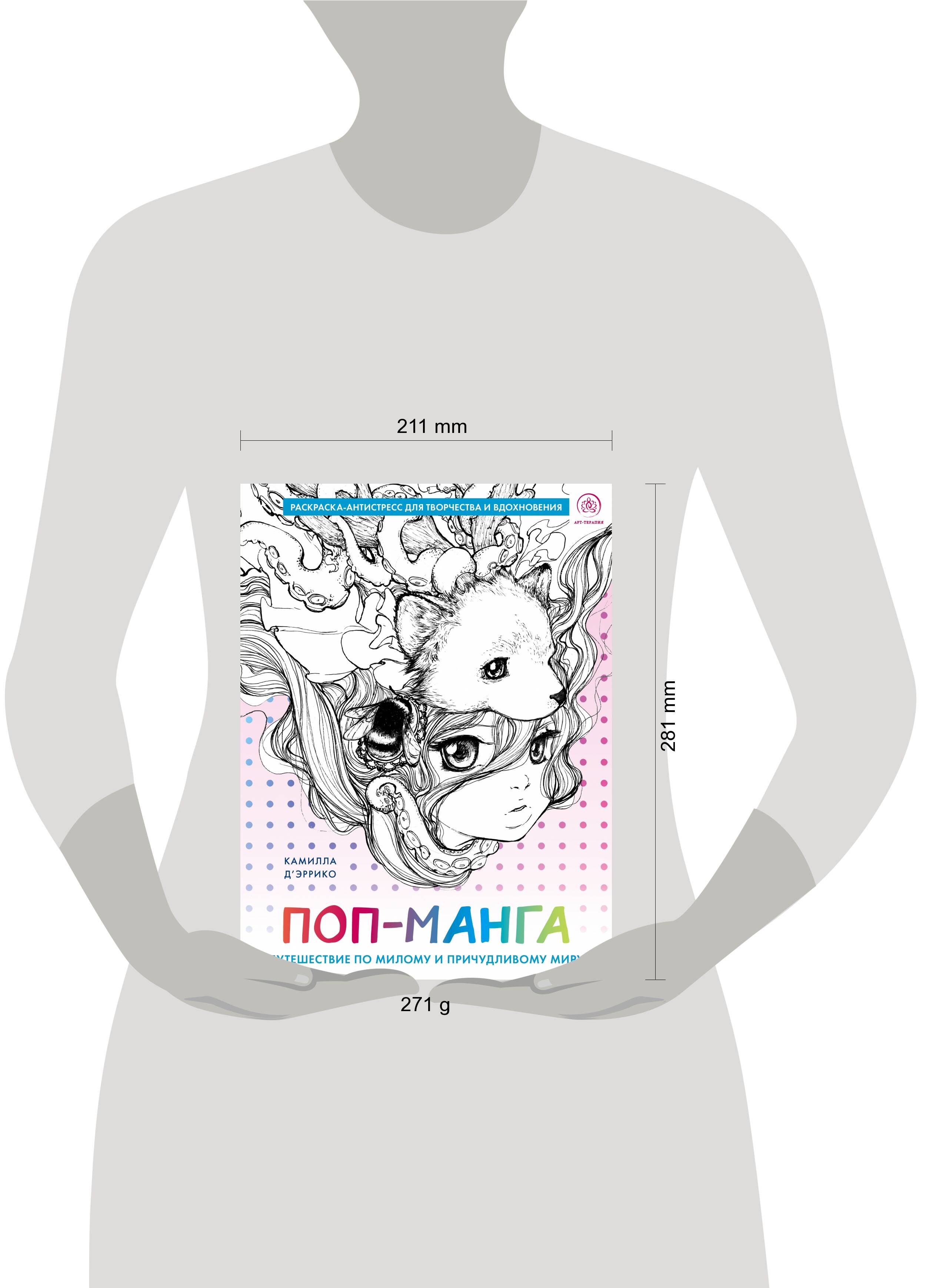 О рисовании в стиле манги знают все. А слышали вы о поп-манге, или манге в стиле поп-сюрреализма? Нет? Тогда вам определенно стоит открыть для себя эту раскраску! С ней вы узнаете об одном из самых необычных направлений жанра манги - поп-манге - от известной в этом направлении художницы Камиллы Д'Эррико и попробуете раскрасить знакомых всем героев поп-культуры в новой, необычной и удивительной поп-сюрреалистической рисовке! Камилла Д'Эррико - невероятно популярная в обществе поп-сюрреалистов художница, получившая широкое признание во всем мире. Художницу номинировали на премии Джо Шустера и Вилла Айснера. Она написала книги по поп-живописи и поп-манге, сотрудничала с издательствами Dark Horse Comics, Image Comics, Hasbro, Disney, Sanrio и даже с Нилом Гейманом! Ее серии Tanpopo и Helmetgirls стали культовыми, а картины растаявшей радуги и девочки с огромными глазами, написанные маслом, принесли невероятную популярность во всем мире. Творите вместе с автором, нарушайте правила, подбирайте такие цвета, какие захотите. Правил внутри нет!