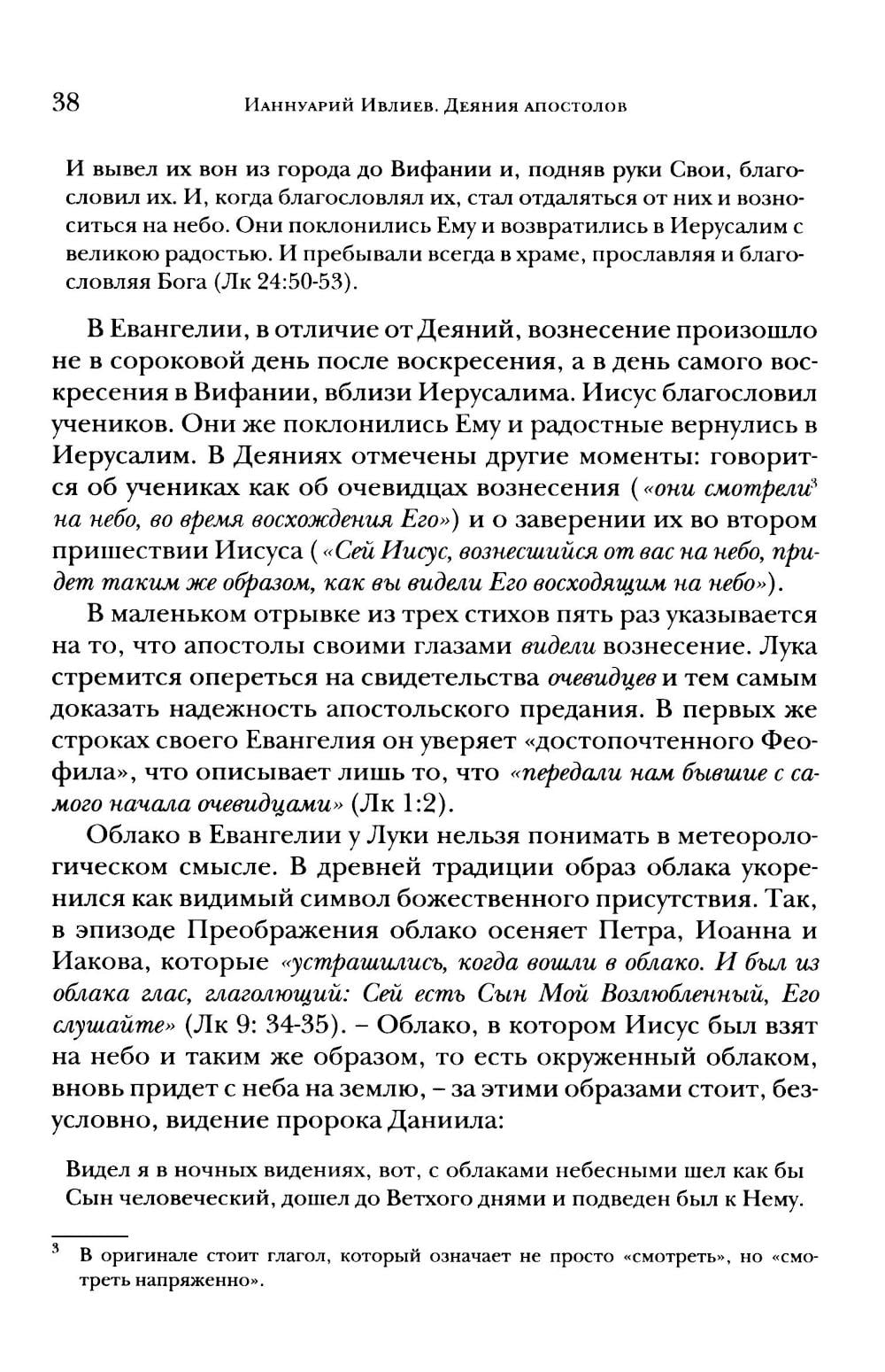Книга Деяний - вторая часть исторического труда апостола Луки, богословской целью которого было указать божественные пути истории спасения. Евангелист ставит историю Иисуса Христа в новую перспективу. Он не делает ее отрывком прошлого, равноценным другим историческим эпизодам. Напротив, он желает показать, что «история Иисуса» не замыкается в себе, но имеет свое продолжение в дальнейшем, вплоть до нашего времени. Ее продолжение Лука показывает в истории апостолов и церкви. Адресаты его книги - прежде всего христиане из язычников. В ней, как и в Евангелии, Лука стремится приобрести последователей Иисуса Христа и членов его церкви, пробудить симпатию к Благой вести, способствовать большему ее пониманию. Языкохристиане должны убедиться в том, что их вера коренится в самых первых днях существования церкви, гарантирована великими авторитетами и перешла к ним, язычникам, согласно Божьему замыслу, от иудеев. Этому новому поколению, которое больше не ощущает связи с иудейством и не принадлежит к поколению основателей церкви, возвещается историческая оправданность их веры. Ианнуарий Ивлиев (1943 - 2017) - архимандрит, выдающийся библеист, богослов, педагог, профессор Санкт-Петербургской православной духовной академии, преподавал в СПбГУ, был членом международного научного общества Colloquium Paulinum, экспертом Объединенных библейских обществ.| Издательство | Изд. ББИ |