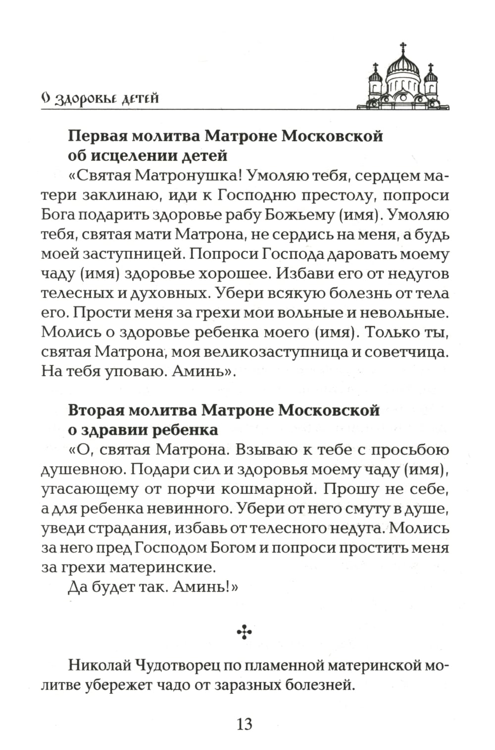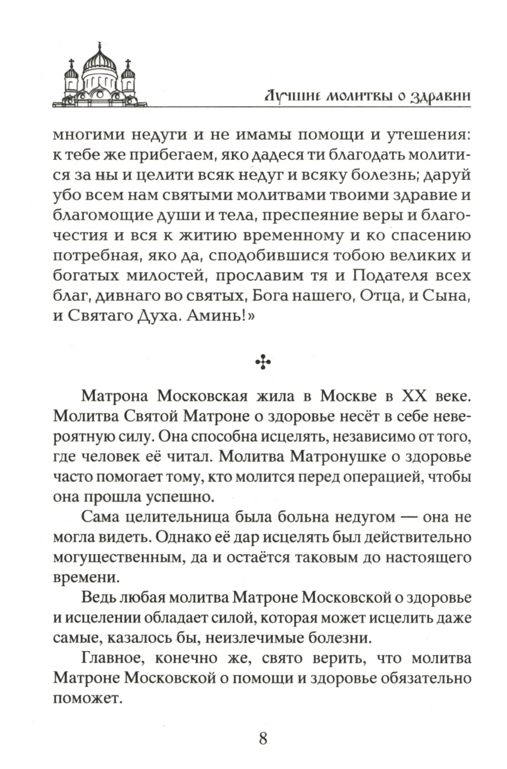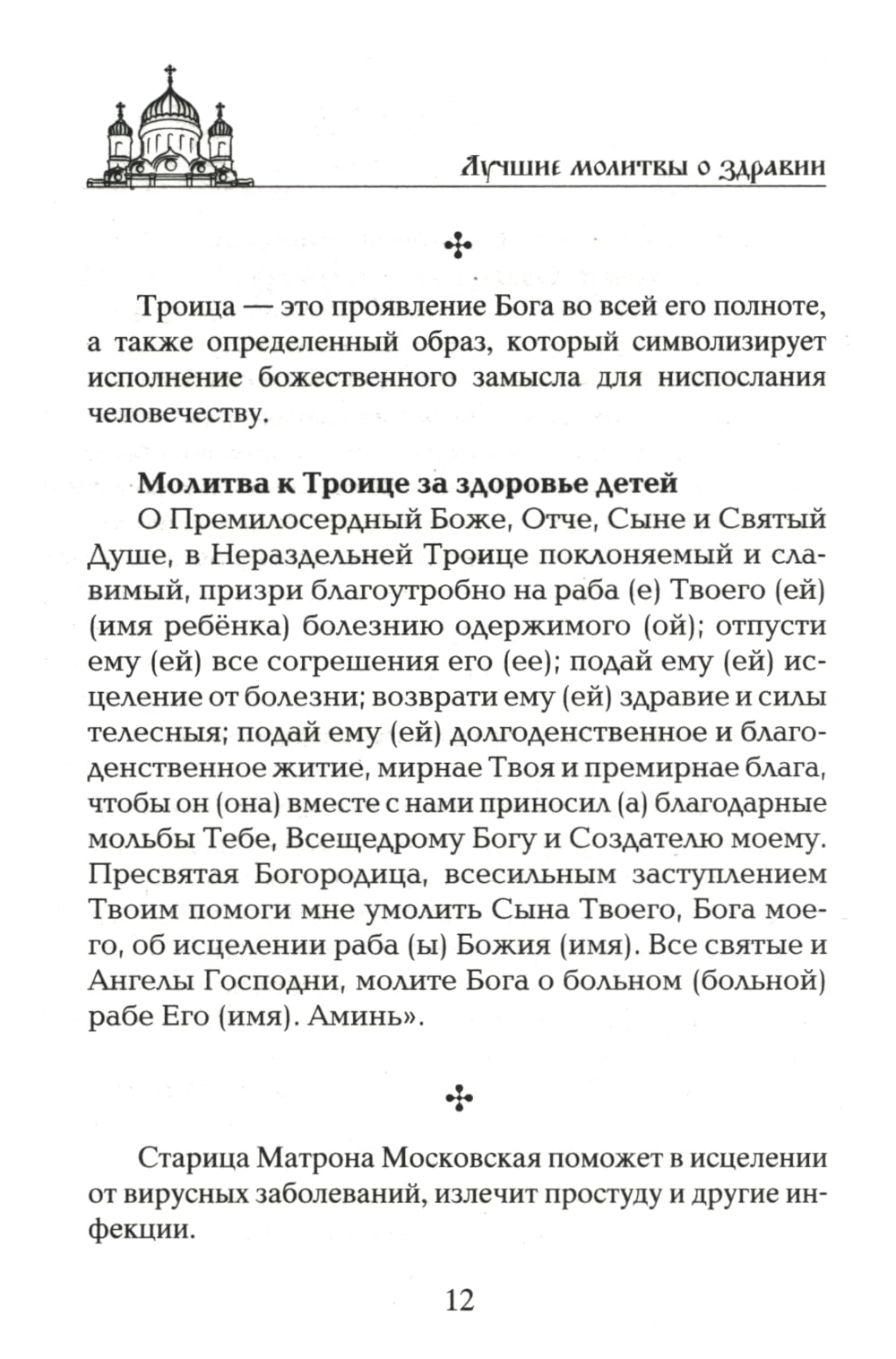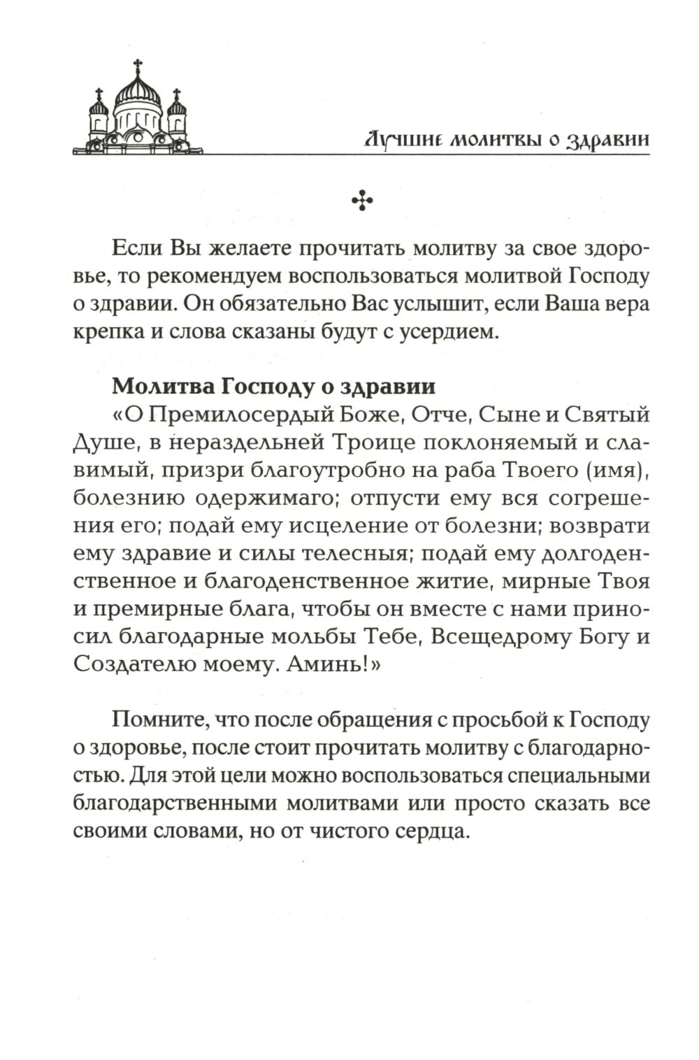 Молитва излечит больное тело и израненную душу. Молитесь горячо и светло и да исполнятся ваши прошения! Господь Всемогущий, Пресвятая Богородица, Спиридон Тримифунтский, Серафим Саровский, Святой Лука, Целитель Пантелеймон, Николай Чудотворец, Сергий Радонежский, Матрона Московская и целый сонм православных святых встанут на защиту здоровья вашей семьи и даже домашних питомцев. Мы предлагаем воздвигнуть вокруг себя и близких нерушимую стену христианских молитв. В этом небольшом сборнике лучшие молитвы о даровании здравия, исцелении болящих и, конечно же, молитвы о детях, ведь все знают, что нет ничего сильнее материнской молитвы. Любая, даже сказанная своими словами молитва, как и любое доброе слово, несет положительную энергетику, но традиционные церковные молитвы заряжены колоссальной силой, которая обязательно поможет.