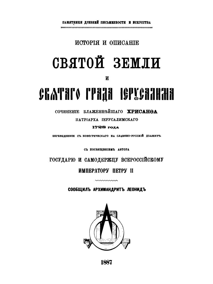 | Автор/составитель | патриарх Иерусалимский Хрисанф |