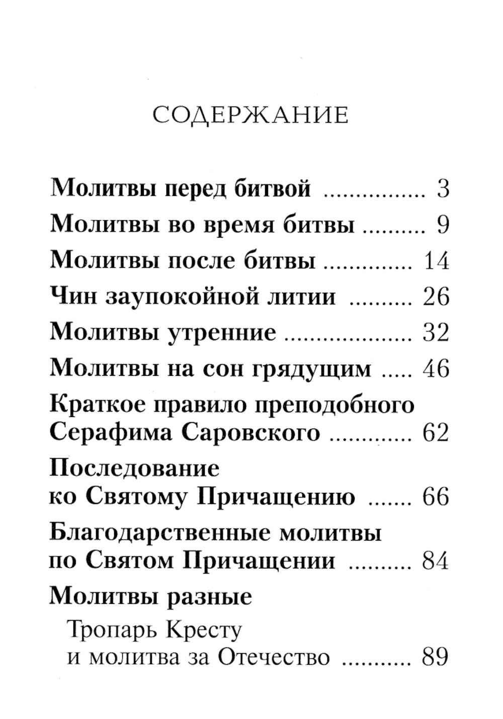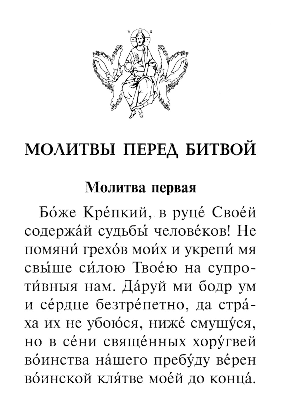 Наш непобедимый полководец А. В. Суворов велел своим солдатам ничего не начинать без молитвы. Этот молитвослов поможет воину испросить помощь Божию и заступничество святых. В него включены традиционные воинские молитвы, молитвы святым, а также краткое наставление о молитве и грехе. Утренние, вечерние молитвы, правило ко Святому Причащению и благодарственные молитвы после него даны в сокращении.| Издательство | Духовное преображение |
