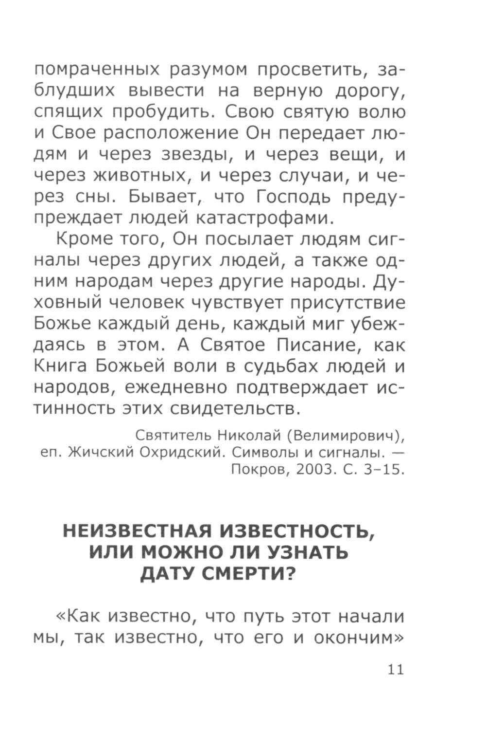 На пути всей нашей жизни Господь посылает нам знаки и вразумления для нашего исправления. Сокровенные знаки Промысла Божия, вещественные и словесные, расставлены на жизненном пути каждого из нас в изобилии, они указывают нам волю нашего Небесного Отца и Праведного Судии. В книге рассказывается о чудесных случаях спасения наших современников, о том в какой момент Господь забирает душу человека, приводятся случаи таинственных необычных совпадений, предчувствий незадолго до смерти, свидетельствующих о том, что над нами есть Недремлющее Око.| Издательство | Новая мысль |