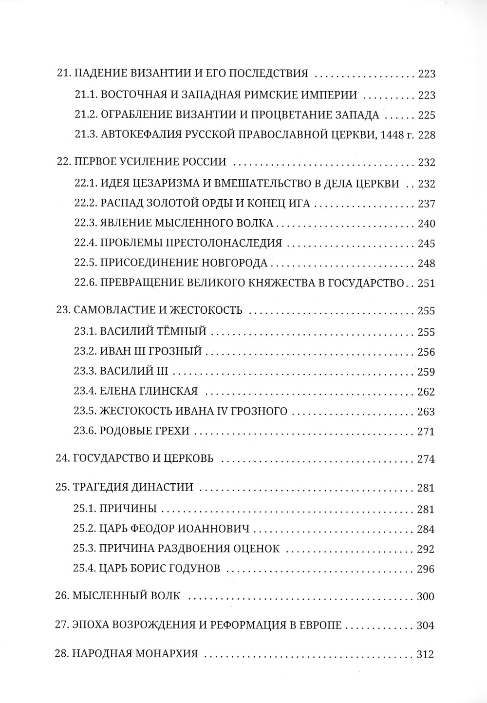 История России остаётся загадкой не только для иностранцев, но и для нас самих. А всё дело в том, по словам Ивана Солоневича, что «русская историография ...есть результат наблюдения русских исторических процессов с нерусской точки зрения». Огромную роль в истории России играет Православие. История России - история Божьего Промысла о русском народе. Вслед за духовным подъёмом в народе всегда наступал государственный подъём, вслед за оскудением духовности наступало ослабление государства. Особенно мощным был духовный подъём русского народа в период монгольского ига. В этот период расцветает Святая Русь, происходит возвышение Москвы, укрепление великорусского этноса, освобождение от ига. Своим возвышением Москва обязана Русской Православной Церкви: Москва 200 лет была церковной столицей, прежде чем стать столицей государственной, именно поэтому Первопрестольная Москва стала святыней для сердца русского народа. Огромную роль играет православие в рождении и становлении великорусского этноса, в становлении так называемой народной монархии, в становлении русской национальной идеи. Через последнего царя династии Рюриковичей Господь показал нам, что не гордые и грозные правители, а смиренные и тишайшие делают государство сильным, а народ счастливым. Суть русской идеи в Православии. Данная книга - опыт исторической публицистики-предназначена для людей, интересующихся русской историей.| Издательство | Литера |