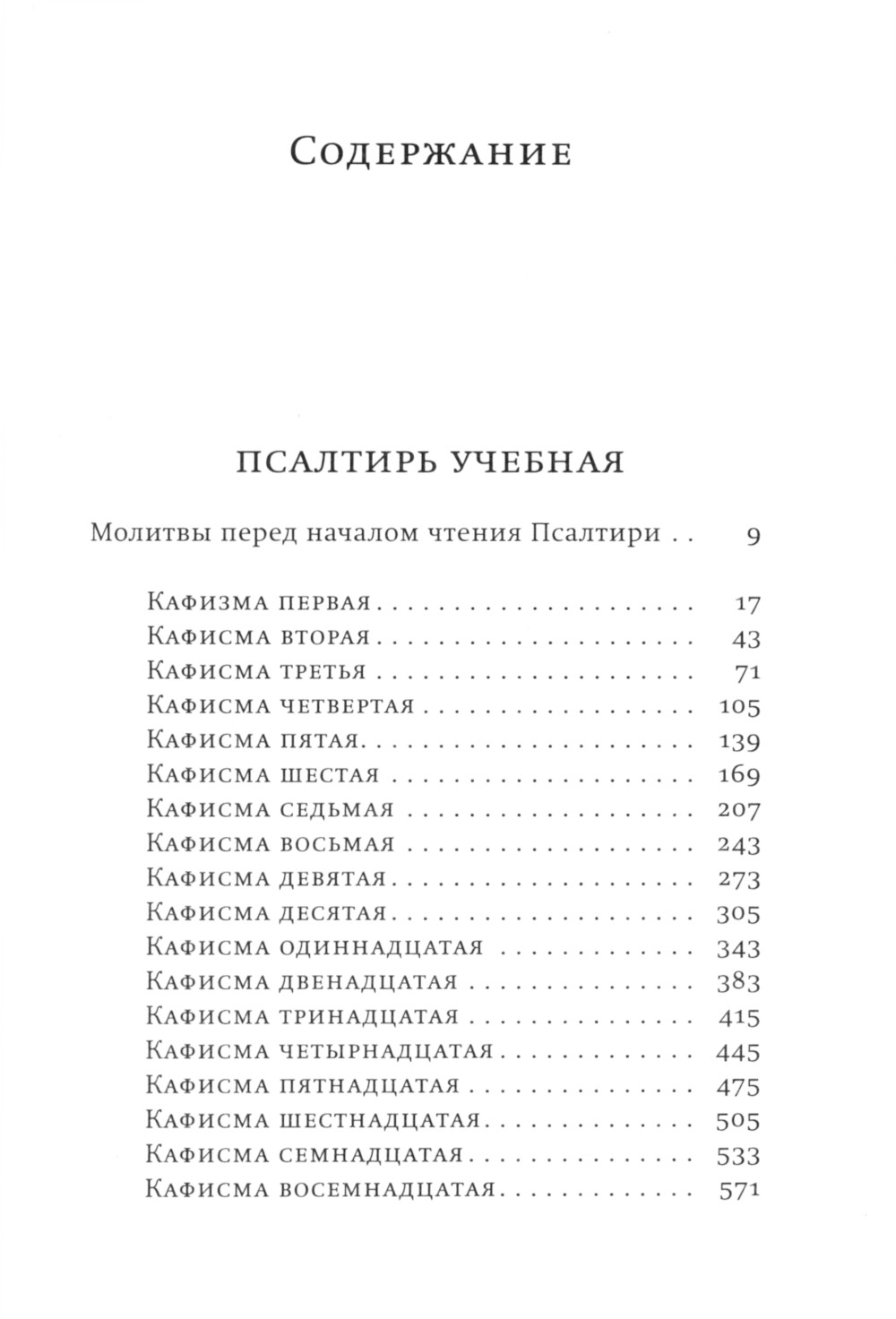 В основе Псалтири учебной - перевод Псалтири с церковно-славянского на русский язык, предпринятый П. Юнгеровым в начале XX века. Цель его - максимально приблизить перевод греческой Псалтири к славянской традиции и сделать его понятным для читателей. Псалтирь содержит два текста: церковнославянский; русский. Тексты расположены на соответствующих друг другу страницах разворота. Русский перевод осуществлён П. Юнгеровым.| Издательство | Скрижаль |