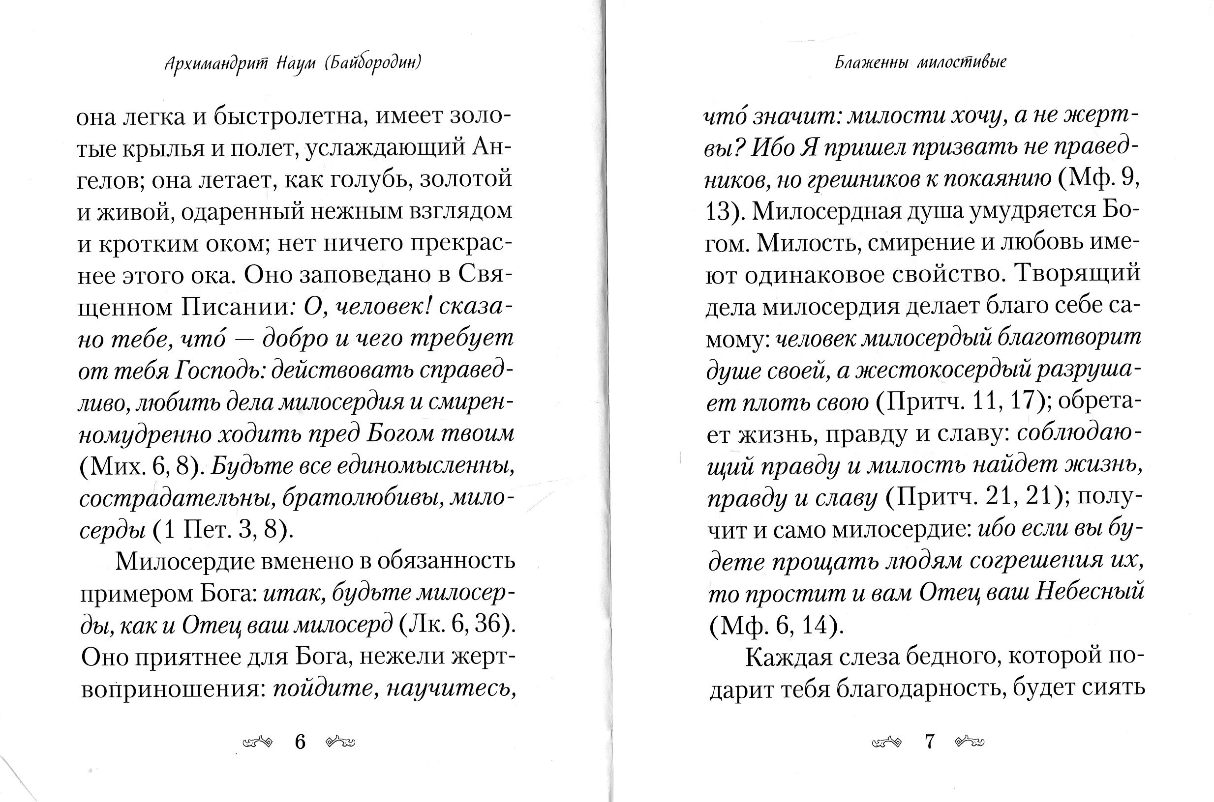 Известный в России и далеко за ее пределами духовник, архимандрит Троице-Сергиевой Лавры отец Наум (Байбородин; 1927-2017) говорил своим духовным чадам: «Главная добродетель, за которую Господь обещает вечное блаженство, есть любовь и милость к ближним, потому что это основание и веры в Бога, и любви к Нему...» Старец часто читал труды святых отцов и делал выписки из их творений. Так он собрал под одной обложкой изречения святых отцов Церкви, которые были посвящены значению милосердия в духовной жизни человека. Этот бесценный труд познакомит вас с высказываниями об одной из добродетелей.| Издательство | Сибирская благозвонница** |