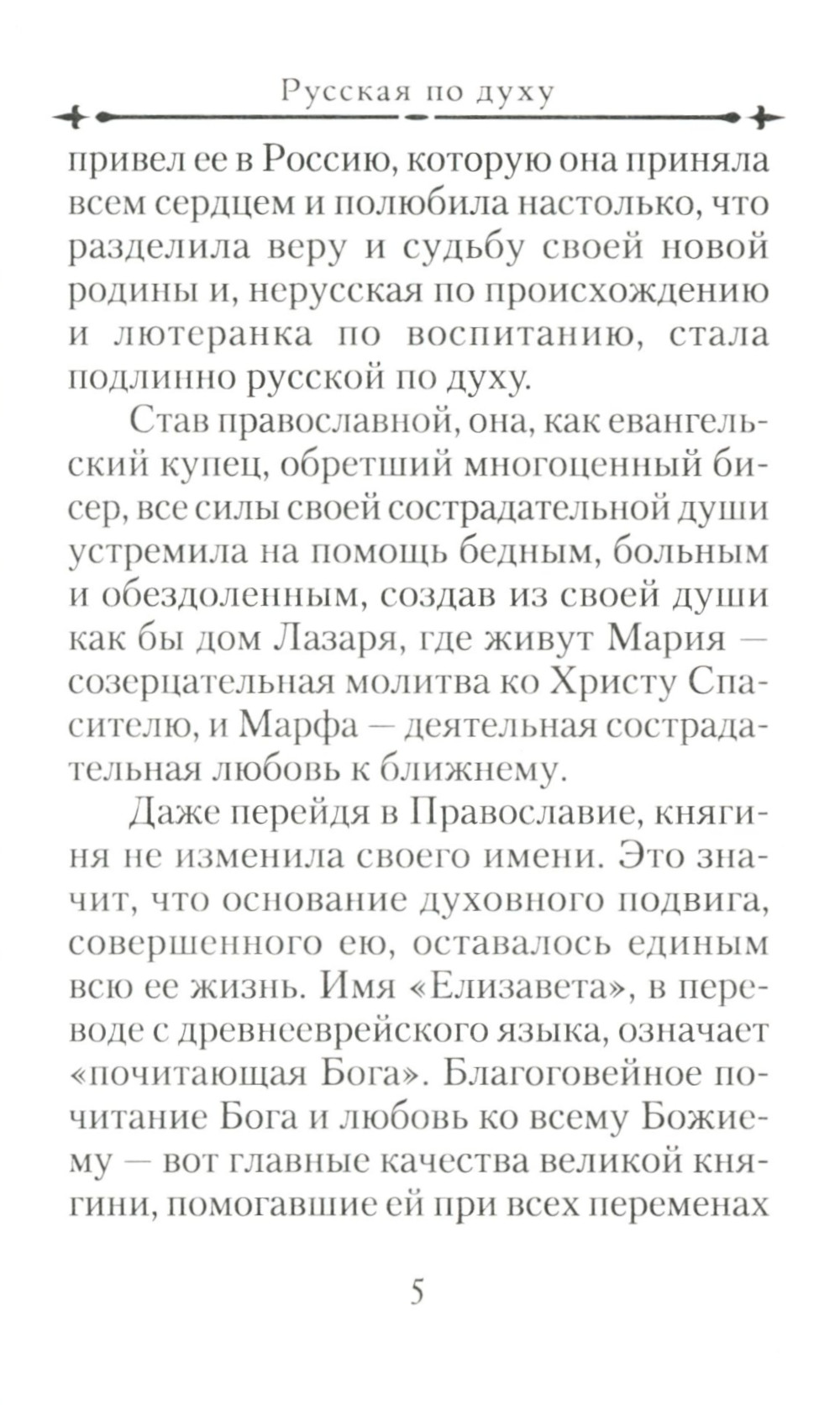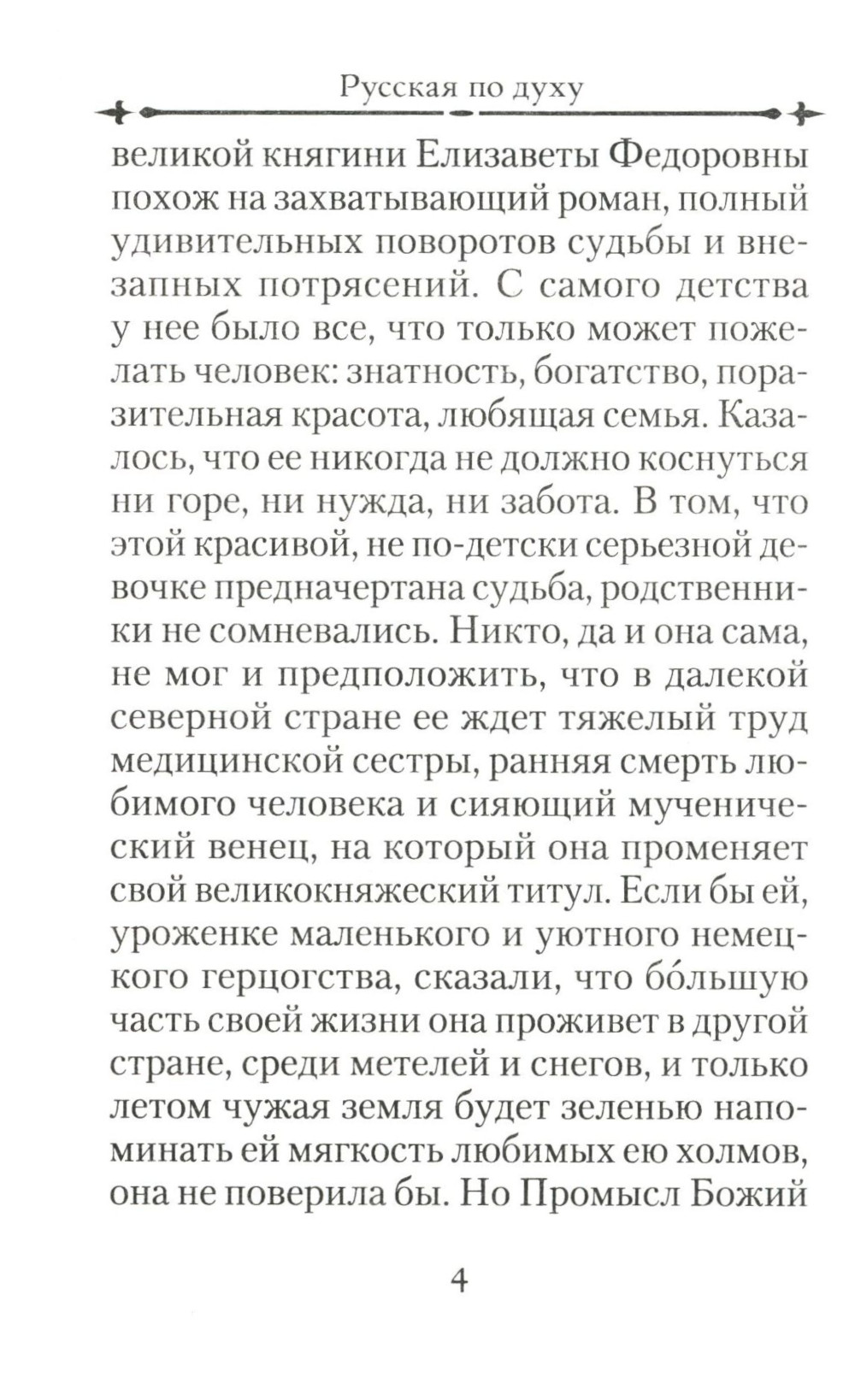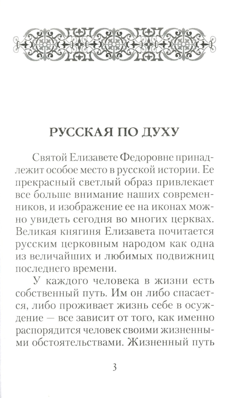 Книга рассказывает об удивительной жизни этой женщины, приехавшей, выйдя замуж за великого князя Сергея Александровича Романова, из маленького немецкого герцогства Гессен-Дармштадт в Россию, где Бог сподобил ее сначала принять Православную веру, а затем и пострадать за неё от новых властителей России - безбожной советской власти.Святой Елизавете Федоровне принадлежит особенное место в русской истории. Немка по крови и протестантка по воспитанию, тем не менее она стала русской по духу, просияв мученической кончиной в лике святых новомучеников и исповедников Российских. Всем сердцем возлюбив свою новую родину - Россию, великая княгиня Елизавета разделила её веру и судьбу, исполнив до конца евангельскую заповедь: Претерпевший до конца спасется (Мф. 24, 13).| Издательство | Сибирская Благозвонница |