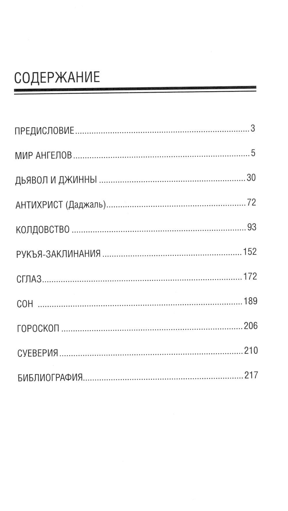 Книга рассказывает о незримых нам мирах ангелов и джиннов, созданных Богом наряду с людьми, о том, могут ли они нам в чем-то навредить или помочь, видят ли они нас, каков смысл их существования, о том, кто есть Дьявол и Антихрист, стоит ли верить в реальность колдовства и сглаза, как толковать сны и бывают ли сны вещие. Здесь вы также найдете немало формул-заклинаний из области духовного целительства от различных недугов, обоснованных Кораном и Сунной.| Издательство | Диля |