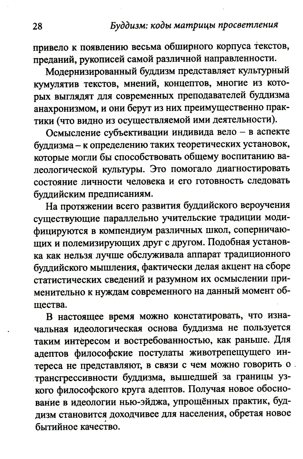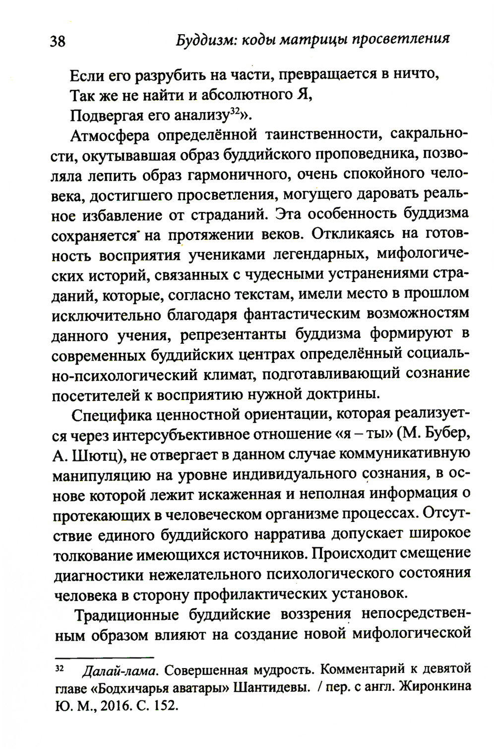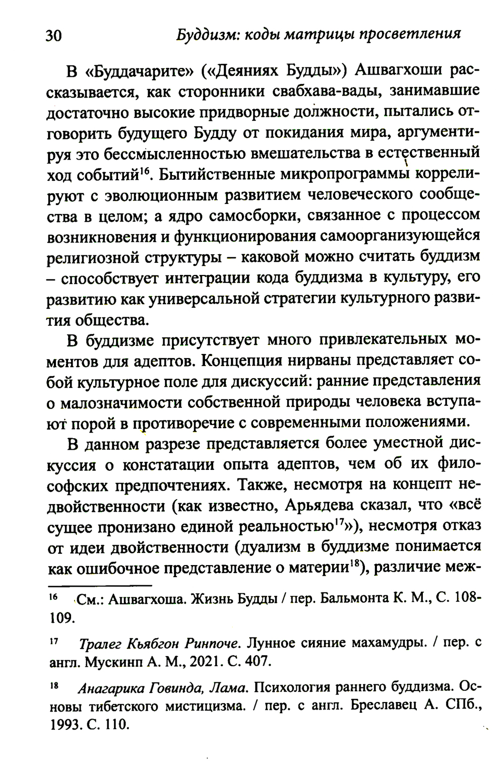 В книге исследуются онто-гносеологические, антропологические и этические детерминанты возникновения и функционирования буддизма, проводится анализ функционирования его как социокультурного метанарратива в рамках секулярной этики, рассматриваются аспекты сущности и проблематика существования в современном обществе. В рамках оригинального философского исследования автор предлагает характеристический подход к изучению и практическому использованию буддизма как новой наррации, как специфического способа осмысления места человека в мире и формы их взаимодействия - в свете мировоззренческих представлений данной доктрины и современной её репрезентации. Феномен буддизма выступает как явление, отражающее сущностные особенности человеческой цивилизации. Универсальные коды матрицы просветления, семиотика и феноменология буддийской культуры, буддизм и философия квантовой физики / технология блокчейна, искусственный интеллект и интеграционное мировоззрение культуры повседневности, - эти и другие темы выступают предметами нетривиального анализа и обсуждения.| Издательство | Амрита-Русь |