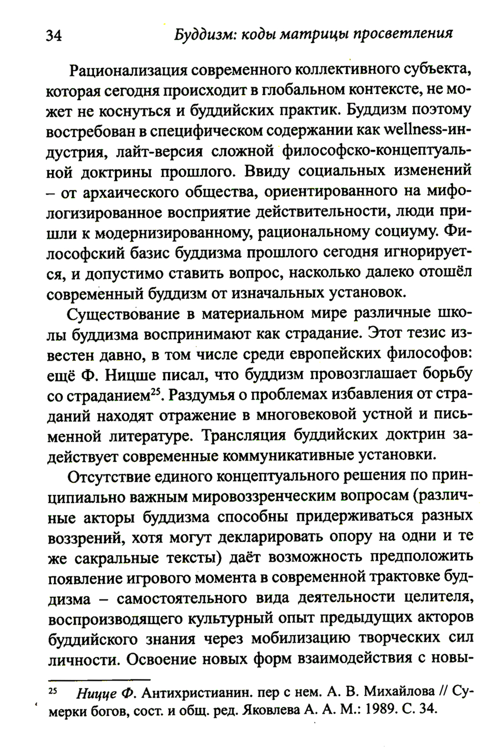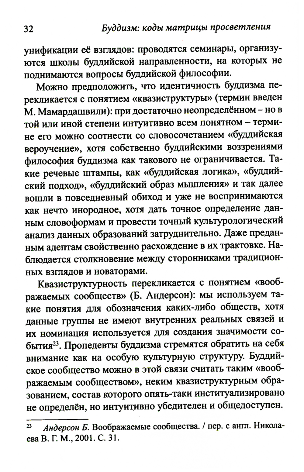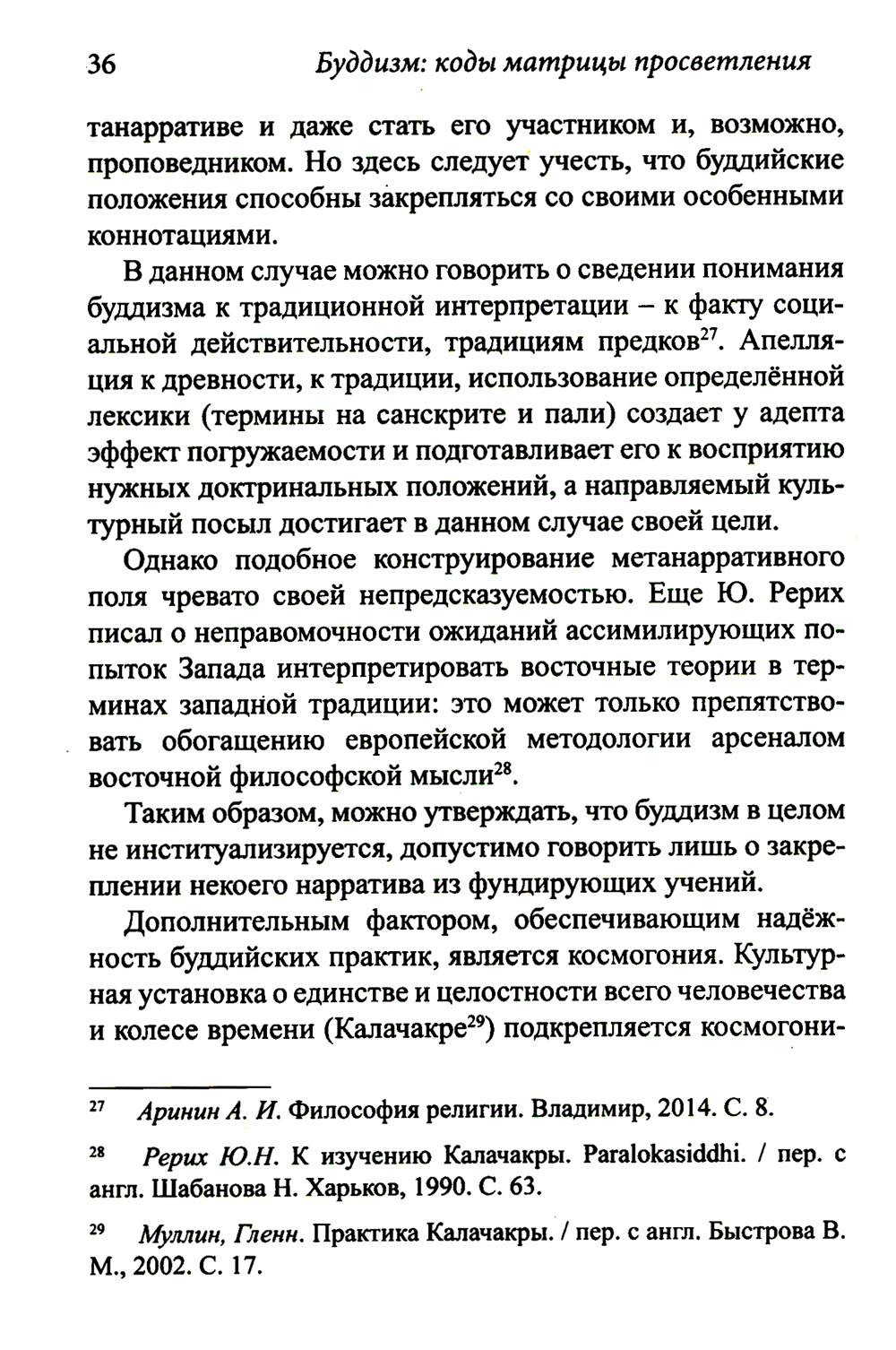В книге исследуются онто-гносеологические, антропологические и этические детерминанты возникновения и функционирования буддизма, проводится анализ функционирования его как социокультурного метанарратива в рамках секулярной этики, рассматриваются аспекты сущности и проблематика существования в современном обществе. В рамках оригинального философского исследования автор предлагает характеристический подход к изучению и практическому использованию буддизма как новой наррации, как специфического способа осмысления места человека в мире и формы их взаимодействия - в свете мировоззренческих представлений данной доктрины и современной её репрезентации. Феномен буддизма выступает как явление, отражающее сущностные особенности человеческой цивилизации. Универсальные коды матрицы просветления, семиотика и феноменология буддийской культуры, буддизм и философия квантовой физики / технология блокчейна, искусственный интеллект и интеграционное мировоззрение культуры повседневности, - эти и другие темы выступают предметами нетривиального анализа и обсуждения.| Издательство | Амрита-Русь |