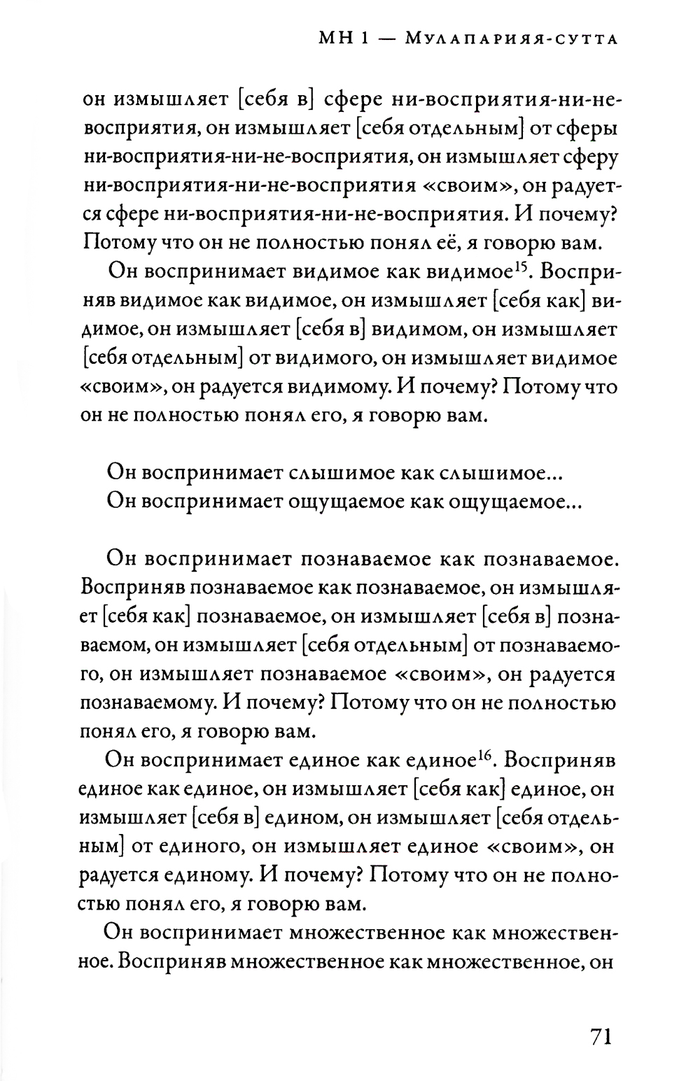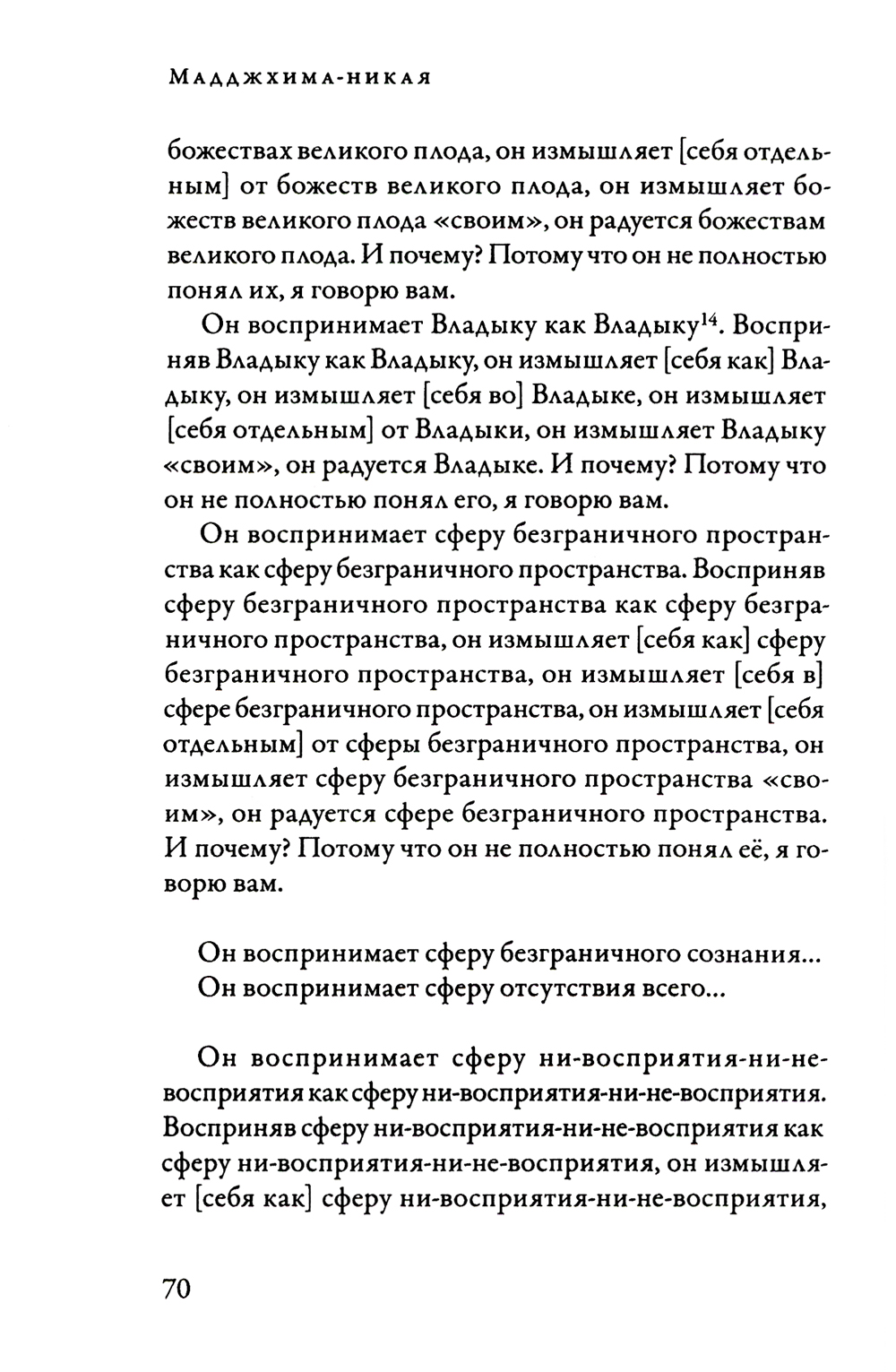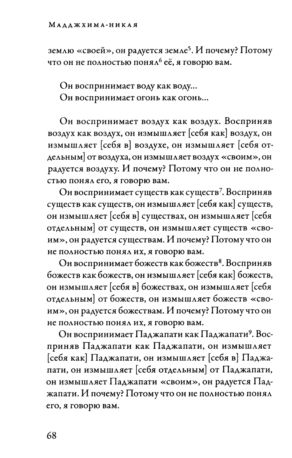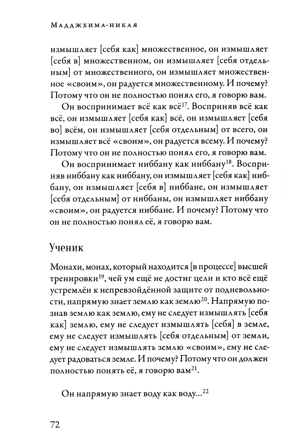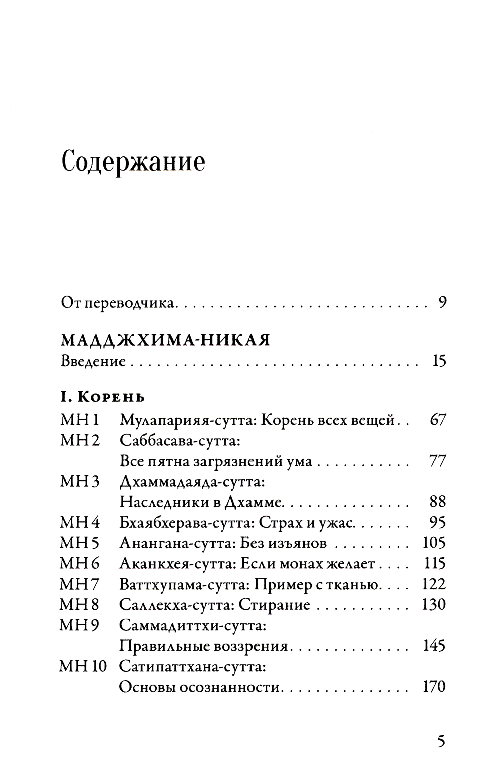 Мадджхима-никая, или «Наставления Будды средней длины», является центральным собранием канонических текстов буддизма Тхеравады. В эту коллекцию включены одни из самых древних сутт, считающихся словом самого Будды Готамы - основоположника буддизма, жившего 2500 лет назад. 152 текста Мадджхиманикаи имеют широкий спектр тематик - от этических основ до наставлений по медитации и раскрытию освобождающего прозрения. Изложение разворачивается в увлекательной последовательности сценариев, изображающих Будду в живой беседе с людьми из разных слоев индийского общества - с царями и царевичами, жрецами и аскетами, простыми селянами и эрудированными философами. Эти беседы, полные драмы, аргументированных рассуждений, ярких иносказаний и метафор, демонстрируют Будду во всей красе его великолепной мудрости, величественной возвышенности и сострадательной человечности.