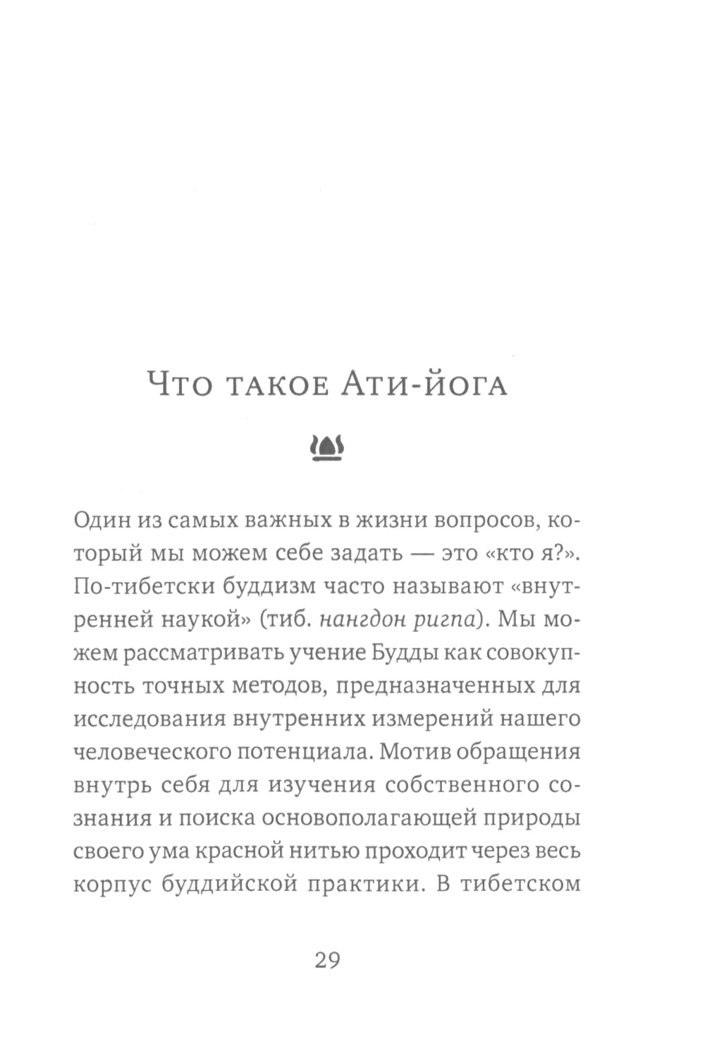 В этой книге содержатся объяснения по одной из самых высоких практик тибетского буддизма. Современный комментарий, данный доктором Нидой Ченагцангом, соседствует с древним текстом, посвящённым этой же теме. Книга будет интересна как тем, кто только приступает к медитационной практике, так и опытным практикующим.| Издательство | Изд. Ганга |