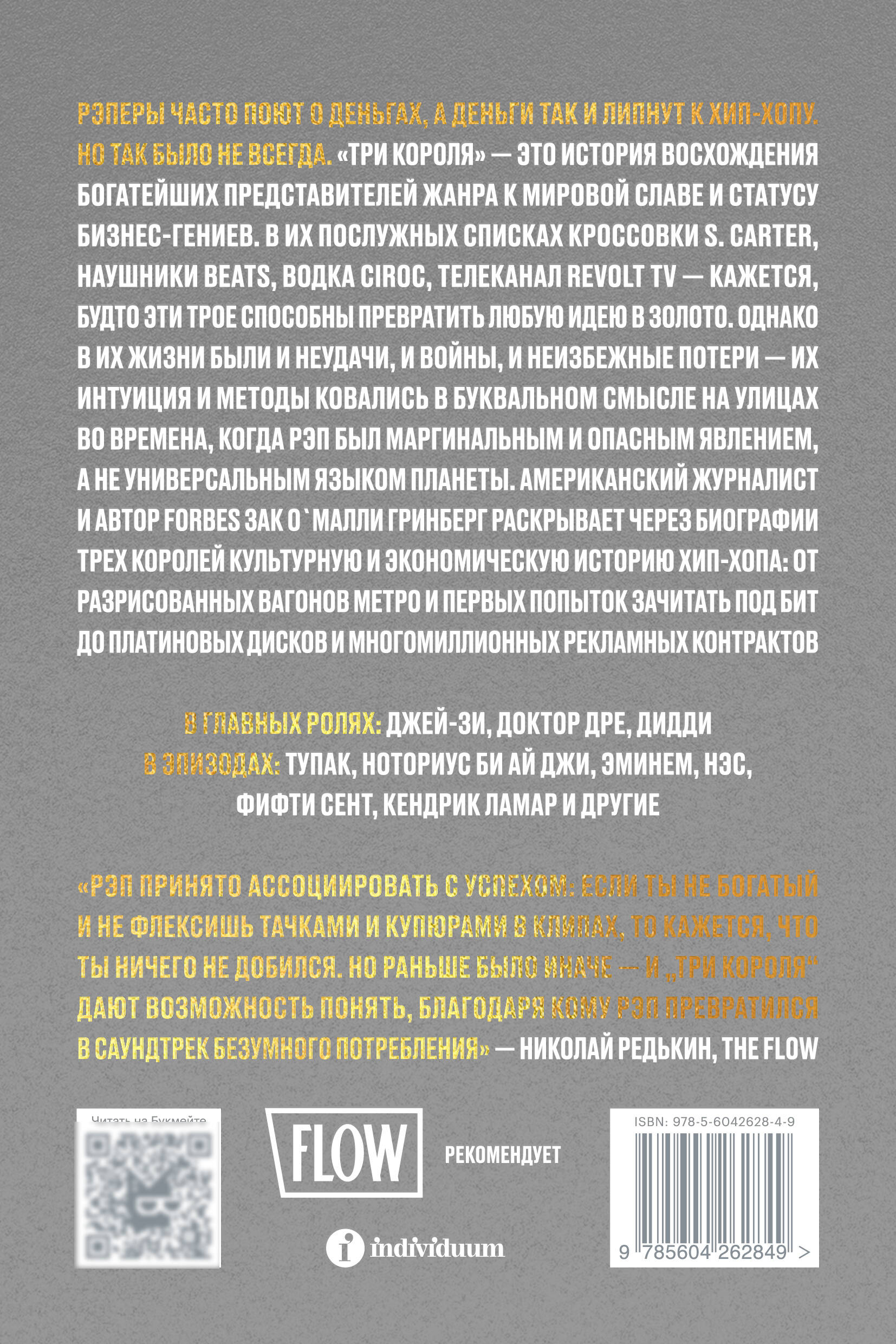 Рэперы часто поют о деньгах, а деньги так и липнут к хип-хопу. Но так было не всегда. «Три короля» - это история восхождения богатейших представителей жанра - Доктора Дре, Дидди и Джея-Зи - к мировой славе и статусу бизнес-гениев. В их послужных списках кроссовки S. Carter, наушники Beats, водка Ciroc, телеканал Revolt TV - кажется, будто эти трое способны превратить любую идею в золото. Однако в их жизни были и неудачи, и войны, и неизбежные потери - их интуиция и методы ковались в буквальном смысле на улицах во времена, когда рэп был маргинальным и опасным явлением, а не универсальным языком планеты. Американский журналист и автор Forbes Зак О`Малли Гринберг раскрывает через биографии трех королей культурную и экономическую историю хип-хопа: от разрисованных вагонов метро и первых попыток зачитать под бит до платиновых дисков и многомиллионных рекламных контрактов.| Издательство | ИНДИВИДУУМ ПРИНТ ООО |