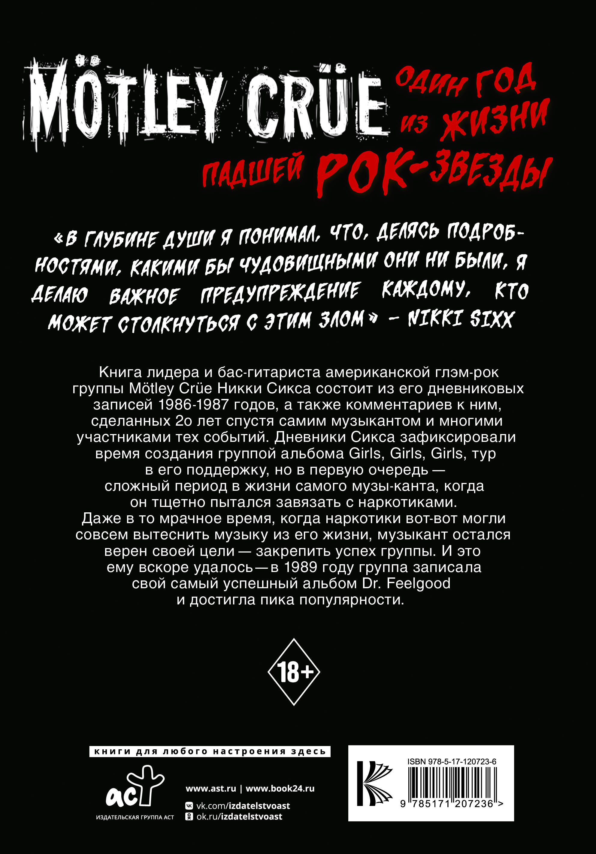 Подарочное издание «Mötley Crüe: Один год из жизни падшей рок-звезды» проведет вас за кулисы жизни легендарного музыканта и лидера Mötley Crüe. Его история - насыщенная, головокружительная и по-настоящему рок-н-рольная, полная взлетов и падений, отражена на страницах его личного дневника, в котором Никки Сикс описывает год расцвета своей славы и ее оборотную сторону. Спустя 20 лет музыкант еще раз возвращается к событиям прошлого - в книге читатель найдет его комментарии, а также фотографии из личного архива группы и атмосферные иллюстрации, органично вписанные в повествование.| Издательство | Издательство "АСТ" |