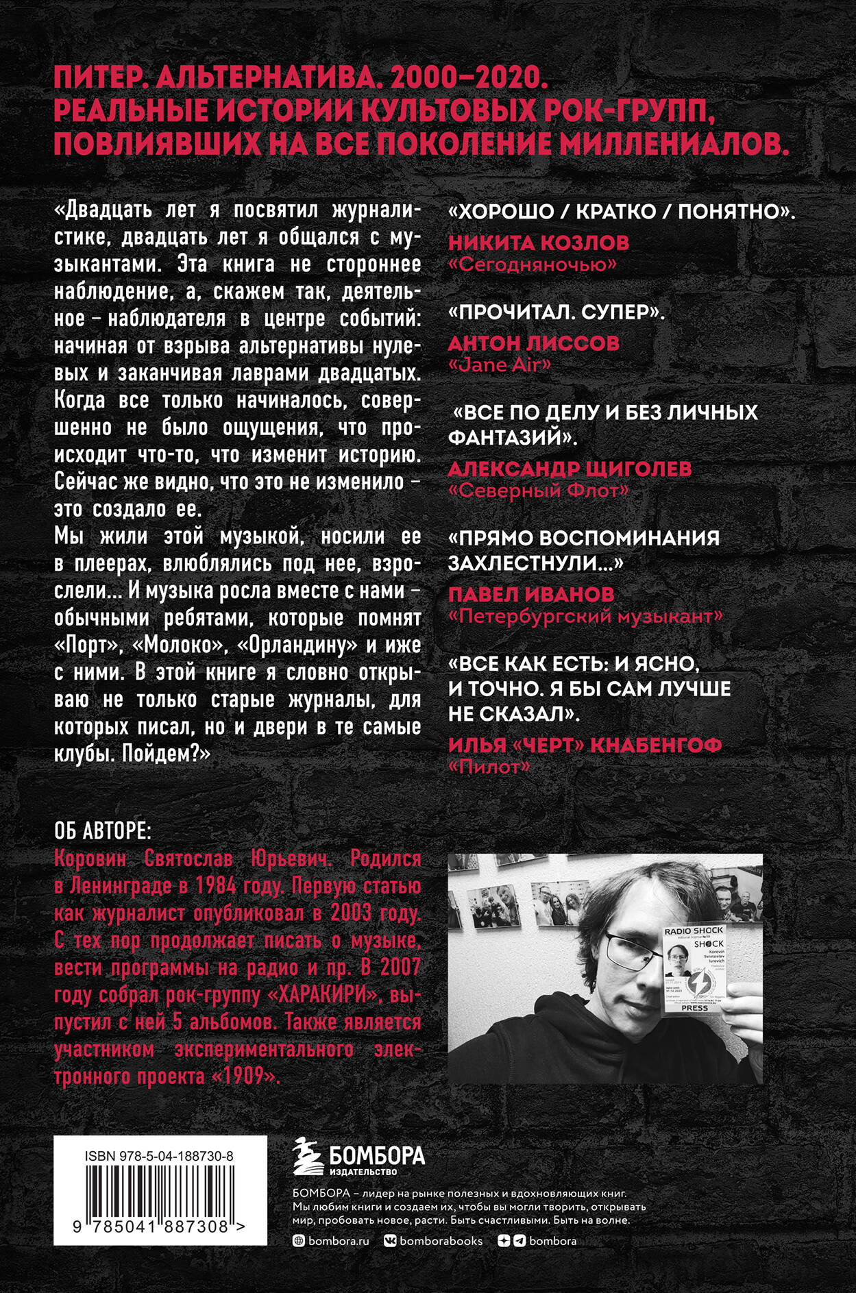 Питер давно и неразрывно связан с музыкой: ленинградский рок-клуб, первые рейвы, звезды альтернативы. Автор этой книги, Святослав Коровин, уже 20 лет занимается музыкальной журналистикой. Он стал свидетелем (а точнее, наблюдателем) зарождения и восхождения рокеров, чьи имена сейчас уже легенды, а когда-то это были совсем молодые и просто подающие надежды группы. Эта книга не энциклопедия, а срез музыкальной жизни Петербурга и всей отечественной сцены с конца 90-х до сегодняшних дней. Истории «Северного Флота», «Пилота», [AMATORY], Jane Air, Animal Джаz, Торбы-на-Круче, «Психеи» и других знаковых исполнителей здесь рассматриваются от частного к общему, через интервью с участниками групп, авторские зарисовки с концертов, фестивалей и радиоэфиров, личные встречи и беседы с единомышленниками. Из этой книги вы узнаете: - как панк проник через железный занавес и почему музыканты научились его играть, ни разу не слышав; - грязное «Нашествие» в Эммаусе и виртуальное - в радиостудии: как эволюционировал главный рок-фестиваль страны; - как Илья Черт из группы «Пилот» стал на одну статью соавтором Святослава и чему был посвящен этот текст; - какой человек сделал известными «Алису» и «Кино», а потом взял под крыло «Последние танки в Париже». «У каждого времени - свои герои. Как и почему ими становятся - вопрос интересный, но часто не имеющий ответа. А иногда и не требующий его. Куда важнее свидетельства того, как именно это происходит. На страницах книги мелькают имена групп и их участников, названия радиостанций и журналов, рецензии на альбомы, отчёты о концертах и фестивалях - словом, точный и нередко остроумный срез того, что происходило на музыкальной сцене Питера (а отчасти и всей страны) в первые два десятилетия XXI века, хотя иногда мысль заносит автора в более удалённые от них времена. Слава Коровин делится мыслями о тех, с кем ассоциируются эти десятилетия именно для него. У кого-то, возможно, список был бы другим, но это и прекрасно - автор, прежде всего, должен рассказывать о том, каким видит мир он сам. Потому что это делает его текст настоящим документом эпохи. А это главное». - Андрей Бурлака, музыкальный журналист, продюсер, историк советского и российского рока, писатель| Издательство | ООО "Издательство "Эксмо" |
