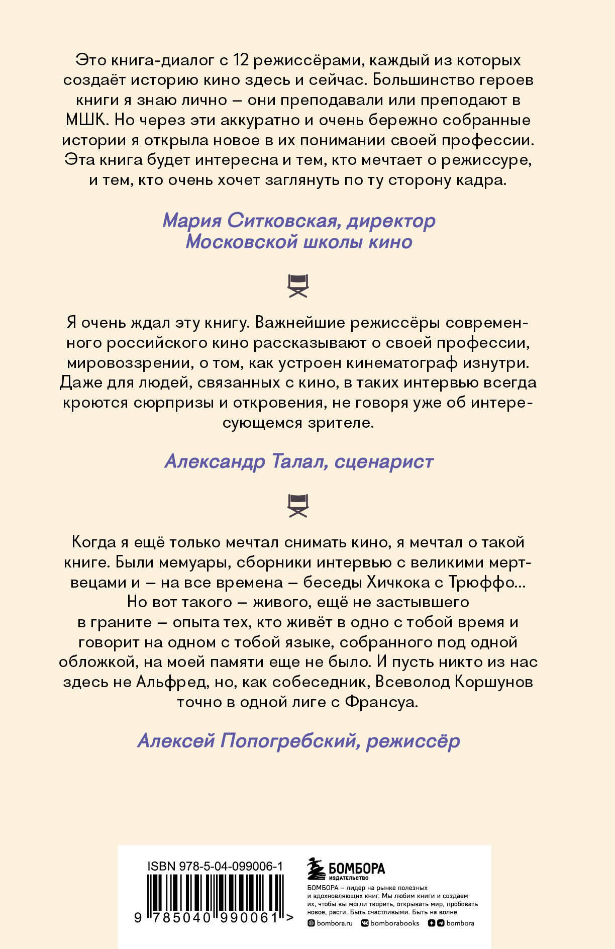 Московская школа кино и издательство Бомбора представляют! Книга «Призвание режиссёр. Беседы с режиссёрами российского кино» - это настоящий калейдоскоп современного отечественного кино. Киновед Всеволод Коршунов встретился с двенадцатью выдающимися режиссерами нашего времени и поговорил с ними об искусстве, ремесле и индустрии в целом. Каждый из них режиссер, но каждый - уникален. У каждого свой взгляд на кино, свои профессиональные секреты и свои ориентиры в искусстве. «Особенность этой книги в том, что ее можно читать по-разному. Киноманы смогут заглянуть на «кухню» творческого процесса, узнать различные истории со съемочной площадки, увидеть, как рождается фильм. А студенты киношкол - побывать на двенадцати мастер-классах очень разных авторов, делающих разное кино, разделяющих разные принципы и использующих разные методики. Мы задумывали эту книгу как практический учебник по кинорежиссуре, в котором каждый параграф будет живой встречей с новым автором». - Всеволод Коршунов, автор книги, киновед, редактор, преподаватель ВГИКа и Московской школы кино В книгу вошли интервью с режиссерами: Жора Крыжовников («Звоните ДиКаприо!», «Родные» и др.), Валерий Тодоровский («Страна глухих», «Стиляги» и др.), Борис Хлебников («Аритмия», «Обычная женщина» и др.), Андрей Прошкин («Доктор Рихтер», «Выжившие» и др.), Оксана Бычкова («Питер FM», «Еще один год» и др.), Иван И. Твердовский («Класс коррекции», «Конференция» и др.), Анна Меликян («Звезда», «Фея» и др.), Павел Бардин («Клуб», «Россия 88» и др.), Наталья Мещанинова («Пингвины моей мамы», «Алиса не может ждать» и др.), Алексей Попогребский («Коктебель», «Оптимисты» и др.), Алексей Федорченко («Овсянки», «Война Анны» и др.), Марина Разбежкина («Время жатвы», «Яр» и др.).