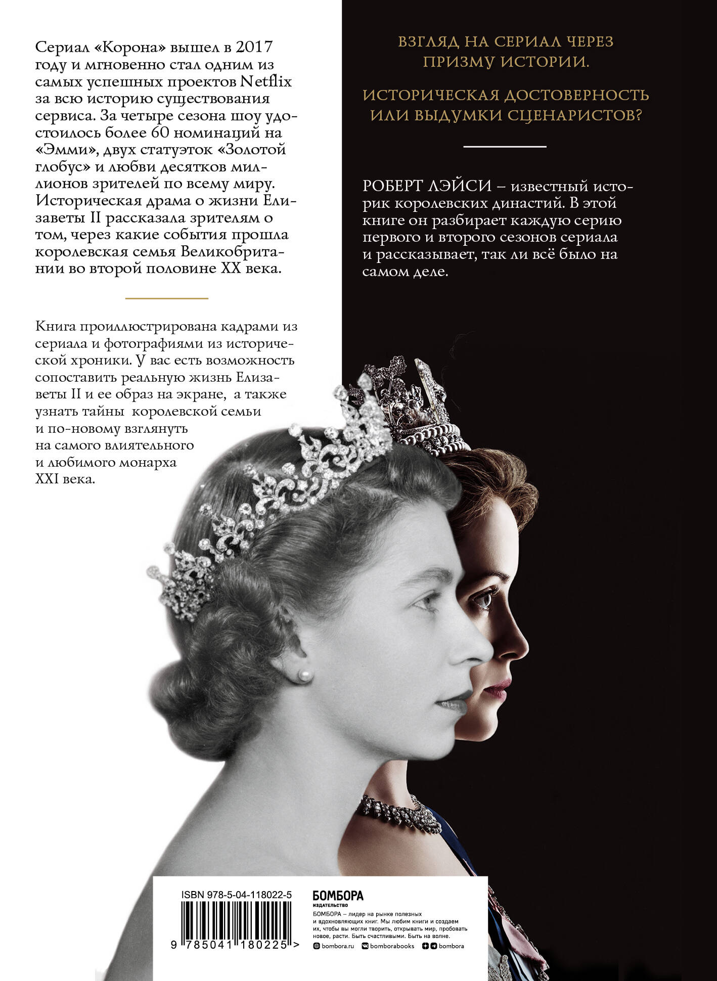 «Я королева, но я также женщина. И жена». - Королева Елизавета Принцесса Елизавета Виндзорская никогда не думала, что станет королевой в таком раннем возрасте. В свои двадцать пять лет она была счастливой женой и матерью, пытающейся найти баланс между семьей и обязанностями принцессы. Однако весть о внезапной смерти ее отца от рака перевернула жизнь Елизаветы: теперь ей нужно было взойти на престол и стать символом страны с величайшей историей, отказавшись от личных стремлений и амбиций. Но сериал «Корона», завоевавший множество престижных наград за последние годы, рассказывает не только об этом. Это, прежде всего, история отношений Елизаветы и ее мужа Филиппа Маунтбеттена. Вот почему первый эпизод сериала начинается не с восшествия на престол королевы Елизаветы II, которое состоялось в феврале 1952 года, и не с ее торжественной коронации в июне следующего года, хотя оба события стали основополагающими для этой истории. Эта книга, посвященная первым двум сезонам сериала, расскажет о том, как его создатели тщательно исследовали исторические факты и пытались искусно вплести в них художественный вымысел. Объяснит, что цель сериала - не только развлечь зрителя, но и показать на экране великих персонажей и масштабные темы, определявшие жизнь страны, а также раскрыть смысл необычных событий, происходивших в ее истории. Высшая сила давней и современной британской монархии заключается в ее способности вызывать искренние чувства - иногда злые и враждебные, чаще любопытные и восхищенные, но всегда чрезвычайно сентиментальные. Именно поэтому эта история уже много лет покоряет сердца телезрителей по всему миру - потому что каждый находит в ней не просто историю одной из величайших династий в истории, но и обычные проблемы, понятные всем. Помимо комментариев экспертов и объяснения некоторых неточностей в сериале книга содержит множество архивных фотографий, часть из которых читатели увидят впервые!| Издательство | ООО "Издательство "Эксмо" |