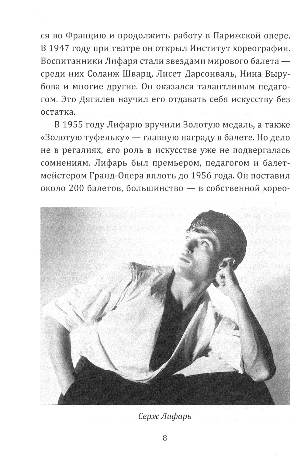 Серж Лифарь в 18 лет стал танцовщиком Русского балета в Париже. Вскоре он уже был звездой, премьером и учеником Сергея Дягилева. В его книге перед нами открываются судьбы звезд русского зарубежья - Игоря Стравинского, Вацлава Нижинского, Тамары Карсавиной… Но в центре повествования - загадочная, эксцентричная и притягательная фигура величайшего импресарио всех времен Сергея Дягилева. Не менее интересен и сам автор, ставший самым известным танцовщиком и хореографом Франции в ХХ веке. При этом в душе он оставался русским человеком, последним представителем Серебряного века нашей культуры.