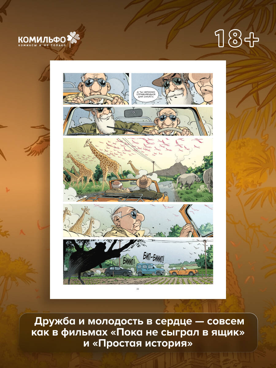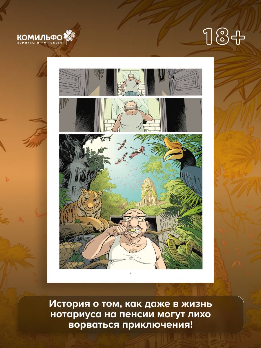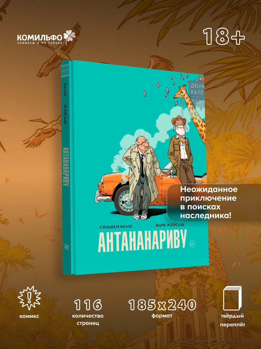 На закате размеренной и неторопливой жизни нотариусу на пенсии впервые предстоит отправиться в путешествие. Дело будничное, но для него это настоящая одиссея. И хотя ноющие кости то и дело напоминают о себе, он без колебаний садится за руль старенького купе, ржавевшего в гараже, и отправляется на поиски гипотетического наследника в компании весьма необычного попутчика. Нежданное приключение приведёт его к удивительным открытиям о людях, которых он, казалось бы, давно и хорошо знал, в том числе и о себе. Яркий пример современного комикса, который с уважением оглядывается на франко-бельгийскую классику, но говорит с читателем на сегодняшнем языке. Внимание к персонажам и общему ритму повествования роднит «Антананариву» с традицией «банд дессине», а дух нежданного приключения на старости лет отсылает к сюжетам фильмов «Пока не сыграл в ящик» и «Простая история». Рассказ о любви, дружбе и том самом жизненном багаже, который мы несем с собой - иногда как груз, а иногда как источник сил. Книга мягко напоминает: приключение здесь, рядом, стоит лишь позволить ему войти в твою жизнь и сделать небольшой шаг навстречу.| Издательство | ООО "Издательство "Эксмо" |