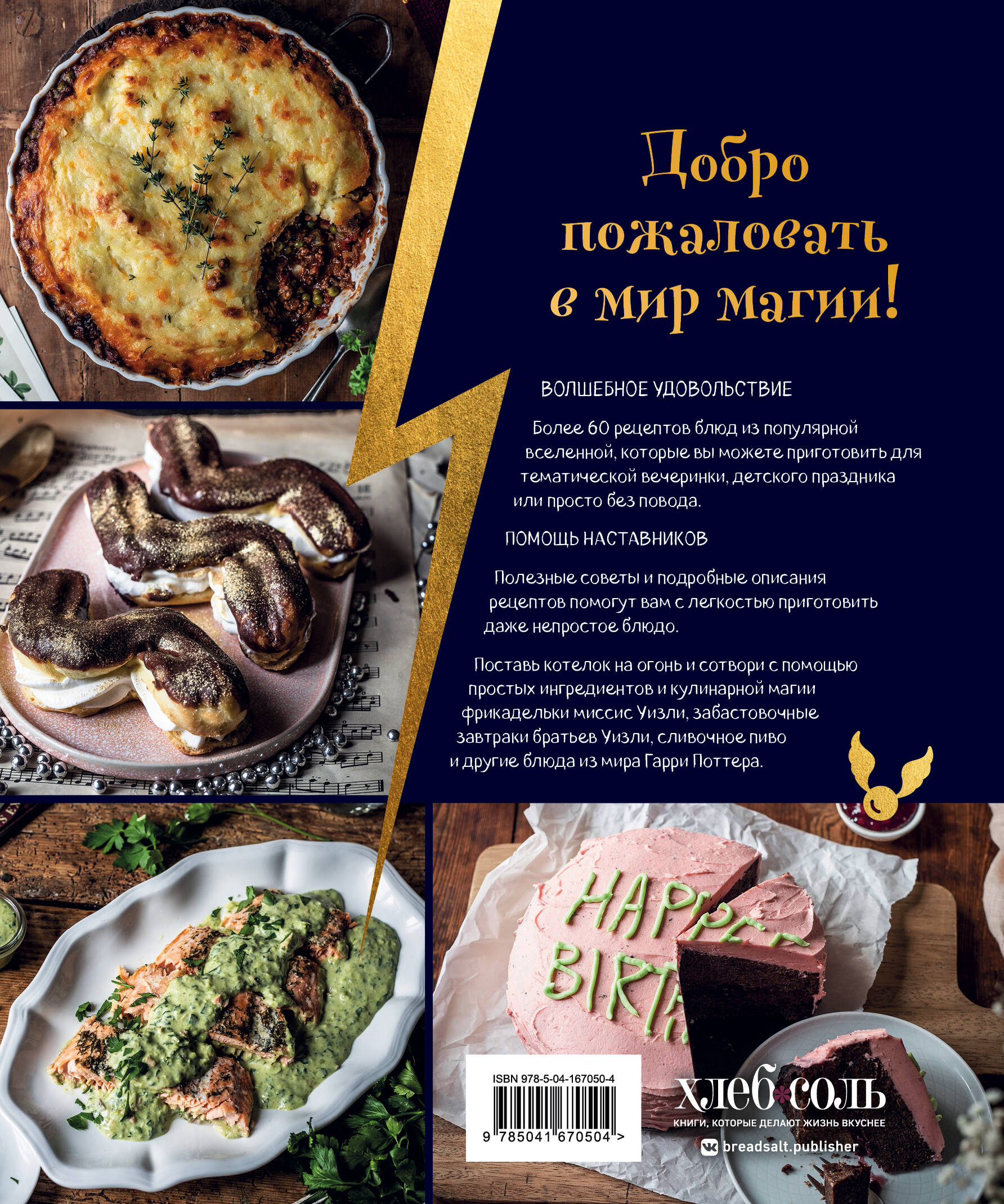 Добро пожаловать в мир магии! Волшебное удовольствие: Более 60 рецептов блюд из популярной вселенной, которые вы можете приготовить для тематической вечеринки, детского праздника или просто без повода. Помощь наставников: Полезные советы и подробные описания рецептов помогут вам с легкостью приготовить даже непростое блюдо Поставь котелок на огонь и сотвори с помощью простых ингредиентов и кулинарной магии фрикадельки миссис Уизли, забастовочные завтраки братьев Уизли, сливочное пиво и другие блюда из мира Гарри Поттера.