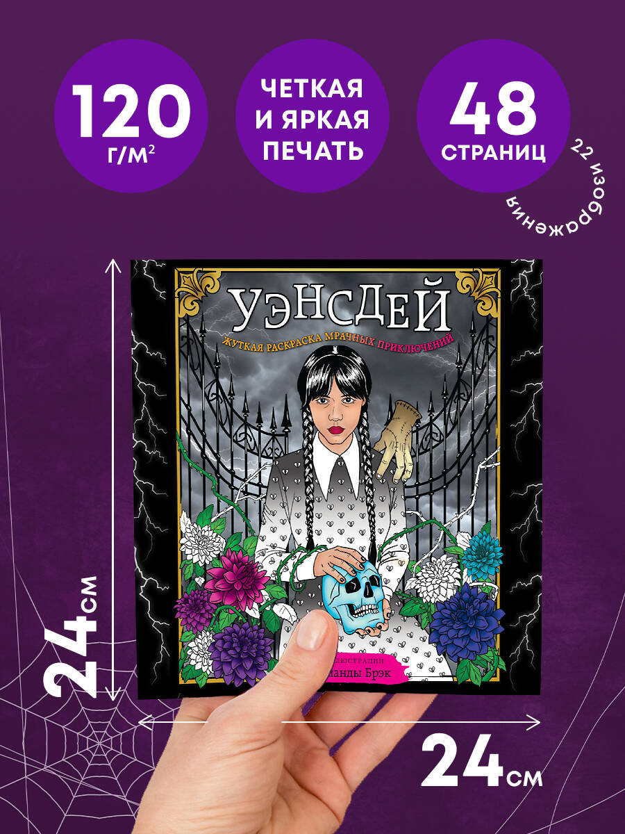 Раз-два, Уэнсдэй найдет тебя! Погрузитесь в мрачную атмосферу вселенной семейки Аддамс вместе с этой раскраской. Под одной обложкой вы найдете 22 иллюстрации, которые расскажут об удивительных приключениях Уэнсдэй Аддамс в академии «Невермор». Берите любимые материалы, устраивайтесь поудобнее и погрузитесь в таинственный мир Уэнсдэй Аддамс прямо сейчас.| Издательство | ООО "Издательство "Эксмо" |