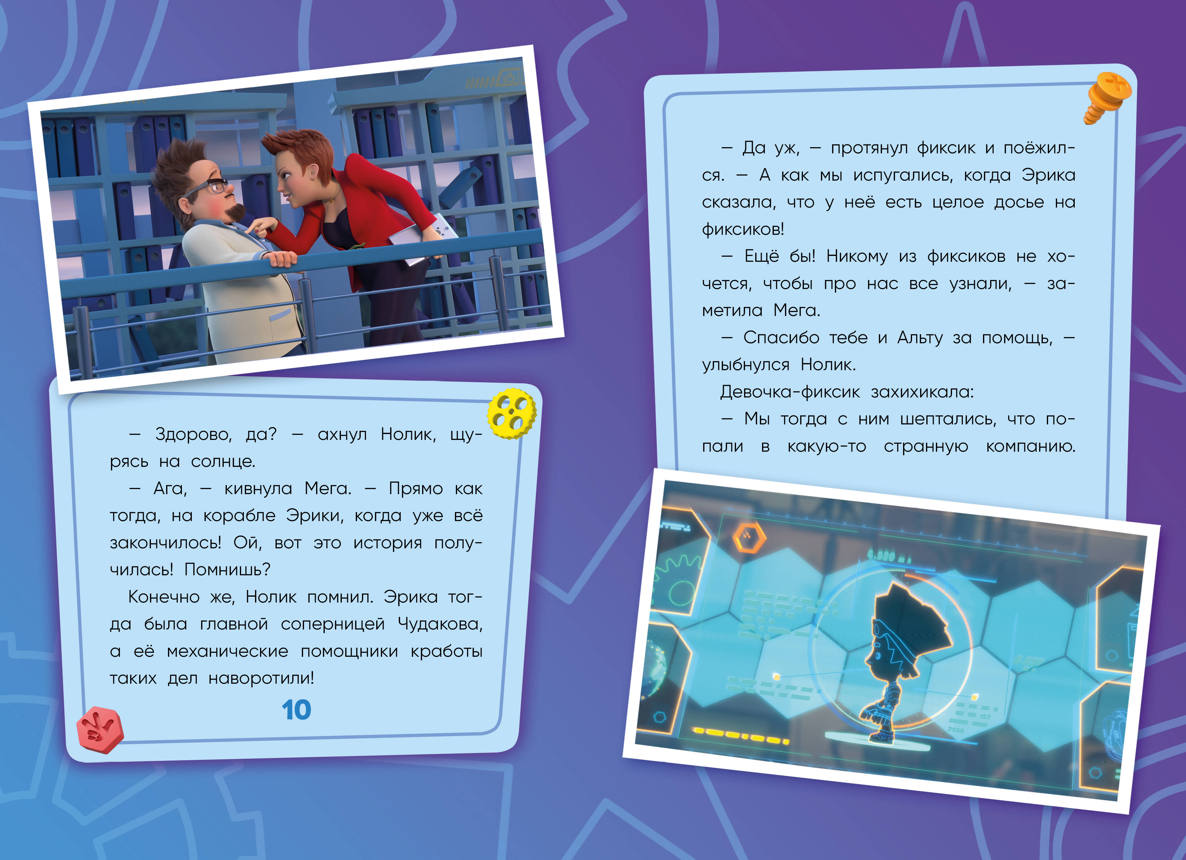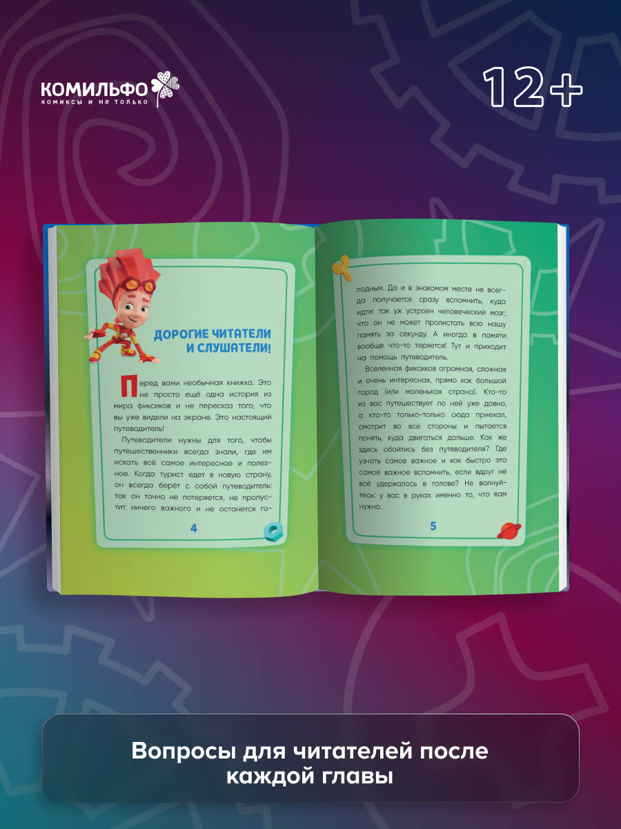 Эта книга проведет тебя по миру фиксиков, где живут и творят эти загадочные существа, познакомит с веселыми играми Симки и Нолика, с мудростью Дедуса и находчивостью Меги. Расскажет о кознях Эрики и ее кработов. Ты окунешься в историю древних фиксиков, побываешь в гостях у великих ученых прошлого, окажешься внутри самых разных приборов и механизмов и, может, сочинишь новую фиксипелку! Яркие иллюстрации, самые интересные факты из жизни фиксиков, вопросы для читателей после каждой главы.
