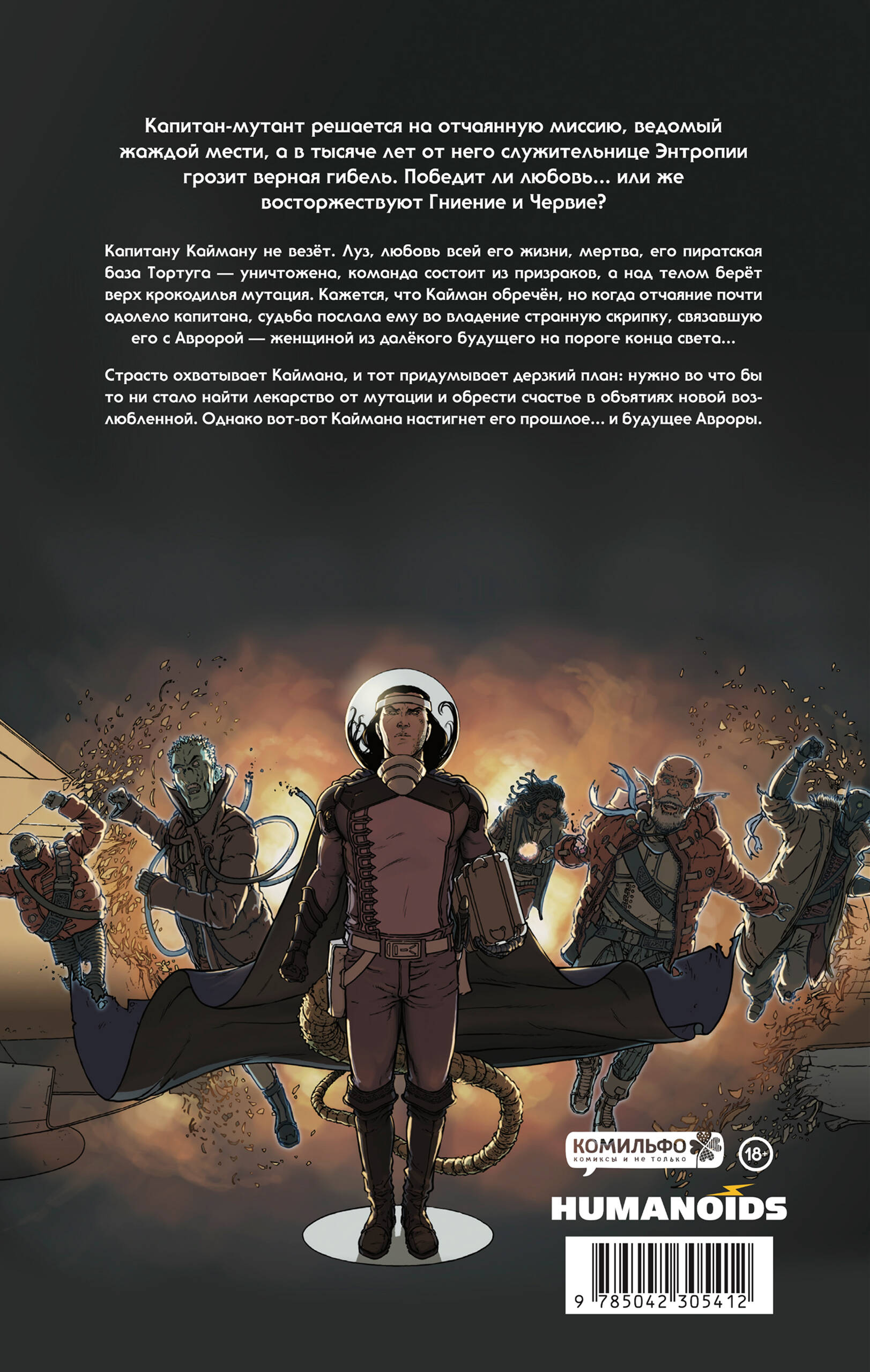 Капитан-мутант решается на отчаянную миссию, ведомый жаждой мести, а в тысяче лет от него служительнице Энтропии грозит верная гибель. Победит ли любовь... или же восторжествуют Гниение и Червие? Капитану Кайману не везёт. Луз, любовь всей его жизни, мертва, его пиратская база Тортуга - уничтожена, команда состоит из призраков, а над телом берёт верх крокодилья мутация. Кажется, что Кайман обречён, но когда отчаяние почти одолело капитана, судьба послала ему во владение странную скрипку, связавшую его с Авророй - женщиной из далёкого будущего на пороге конца света... Страсть охватывает Каймана, и тот придумывает дерзкий план: нужно во что бы то ни стало найти лекарство от мутации и обрести счастье в объятиях новой воз-любленной. Однако вот-вот Каймана настигнет его прошлое... и будущее Авроры.
