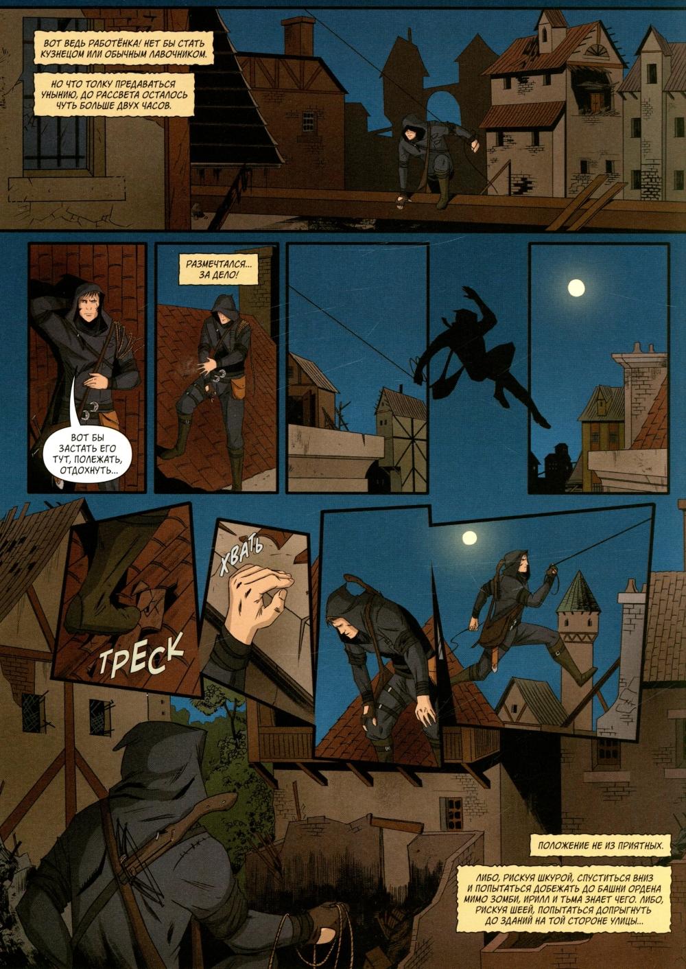 В первом томе комикса «Крадущийся в тени» самый ловкий вор Авендума получил невыполнимый заказ короля, от которого просто невозможно отказаться. Так еще и по пятам следуют профессиональные убийцы, демоны и не шибко умные козлолюды! Но все это меркнет перед опасностями, что таит в себе Запретная территория... Сможет ли Гаррет выбраться оттуда живым? Чем закончится эпопея с Конем теней? И какой дерзкий план готовят слуги Неназываемого? Ответы ждут вас внутри!| Издательство | Alpaca |