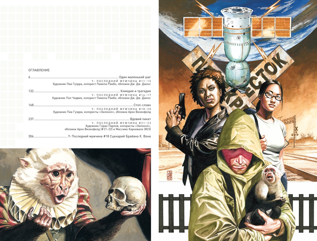 В 2002 году мир навсегда изменился. Повсюду на земле все мужчины и мальчики, все млекопитающие с Y-хромосомой разом упали и умерли. Из-за гибели более чем половины человечества шестеренки общества застопорились. Теперь перед женщинами стоит задача: собрать мир по частям и уберечь цивилизацию от полного коллапса. «Гендерцид», впрочем, оказался не вполне тотальным. По неведомым причинам молодой человек Йорик Браун и его ручной капуцин Амперсанд остались живы. За одну ночь безвестный юнец оказался главным человеком на планете - возможным ключом к загадке гендерноспецифической эпидемии. А самый важный для самого Йорика человек находится за 10 000 миль от него, и юноша готов на все, чтобы ее отыскать. Однако пускаясь в путь по миру, где остались одни женщины, парнишка и обезьянка обнаруживают, что за ними охотятся - с самыми разными целями.| Издательство | Азбука |