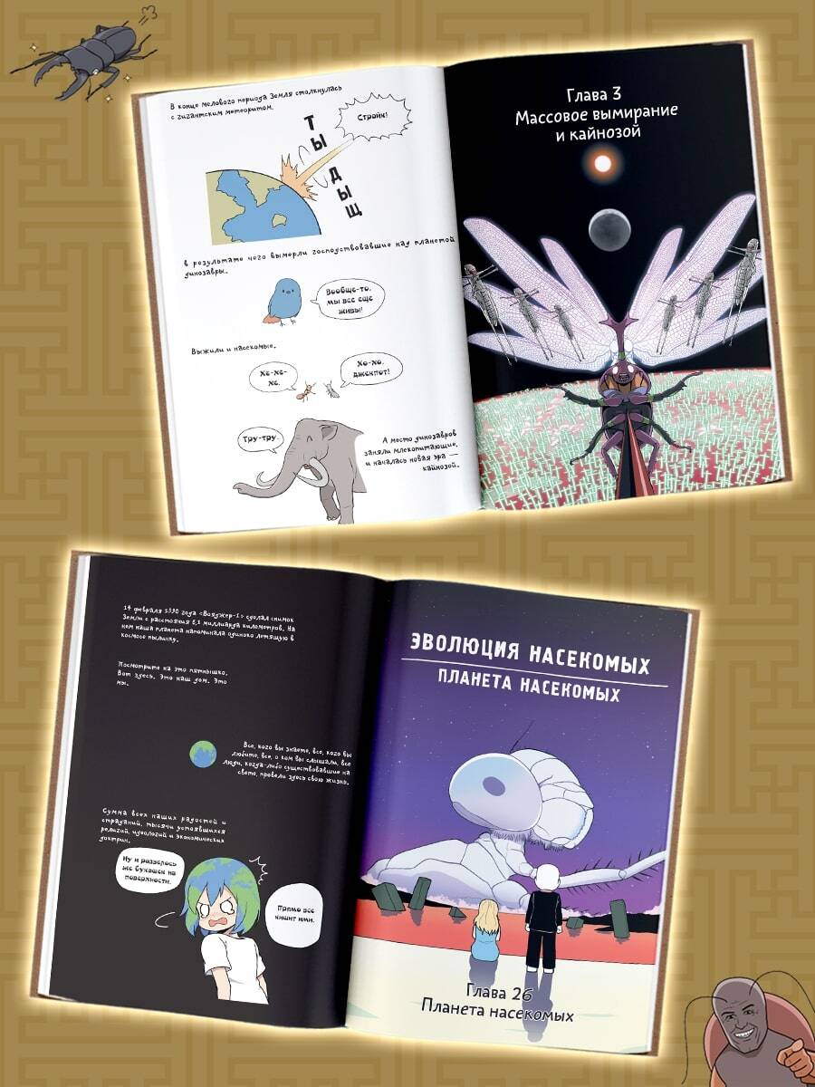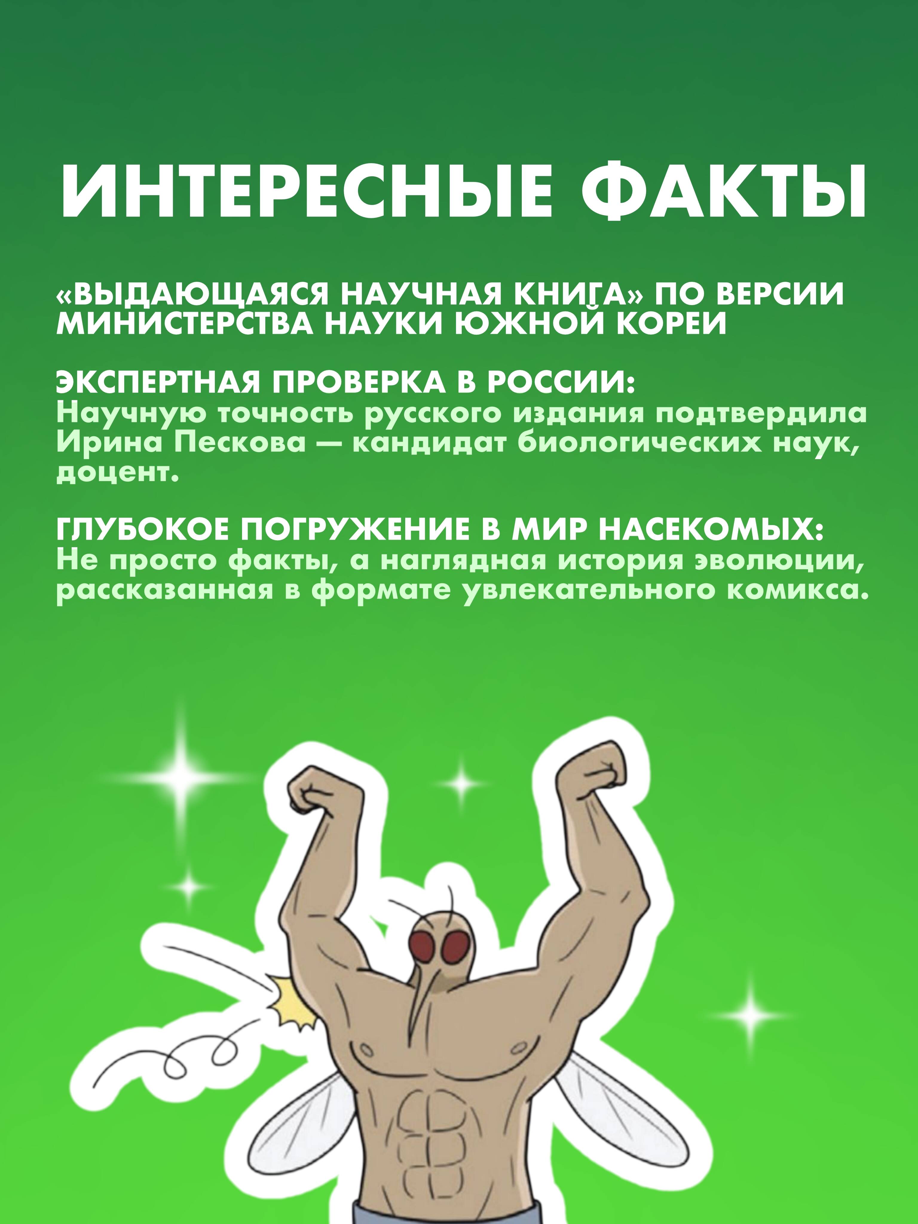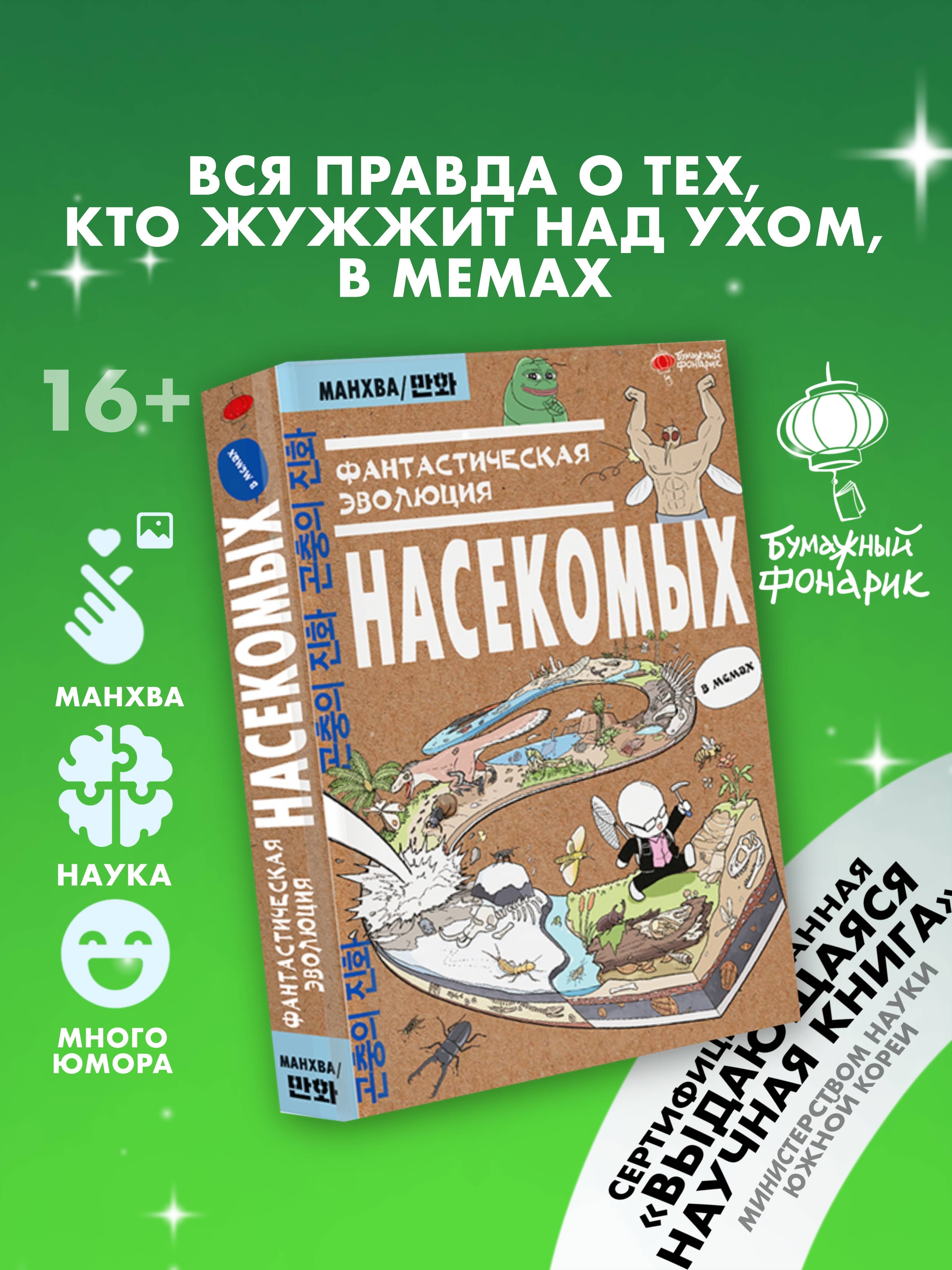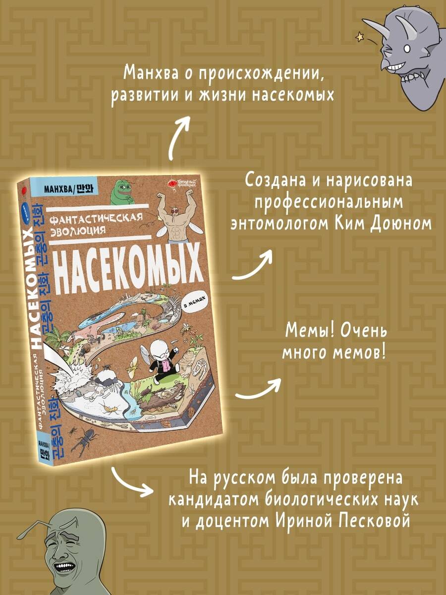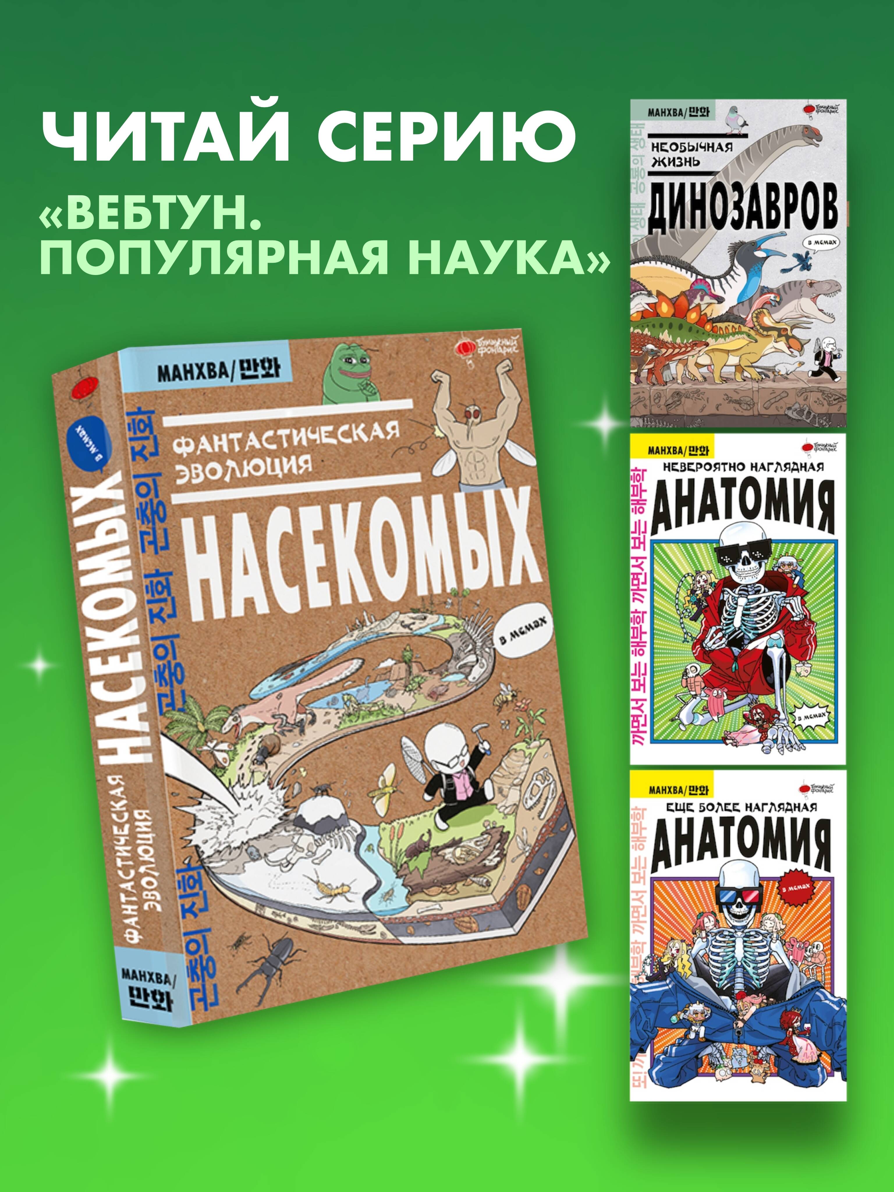 "Фантастическая эволюция насекомых" - это научно-популярный корейский вебтун, который благодаря бешеной популярности в интернете (более 4 миллионов просмотров) позже был издан в печатном формате. Благодаря этой книге вы сможете узнать все о происхождении, развитии и жизни насекомых. Узнаете о теориях происхождения крыльев, экзоскелете, взаимодействии этих животных с растениями, а также о необычных привычках и опасностях, которые несут насекомые. Манхва написана и нарисована профессиональным энтомологом Ким Доюном, который изучает эволюцию насекомых в течение многих лет. На русском ее содержание было проверено кандидатом биологических наук и доцентом Ириной Песковой. Данная работа будет интересна всем, кто хочет получить профессиональные знания без напряжения и занудных текстов. Книга написана легким слогом и содержит наглядные рисунки, узнаваемые отсылки и множество смешных мемов! Для широкого круга читателей.| Издательство | Издательство "АСТ" |