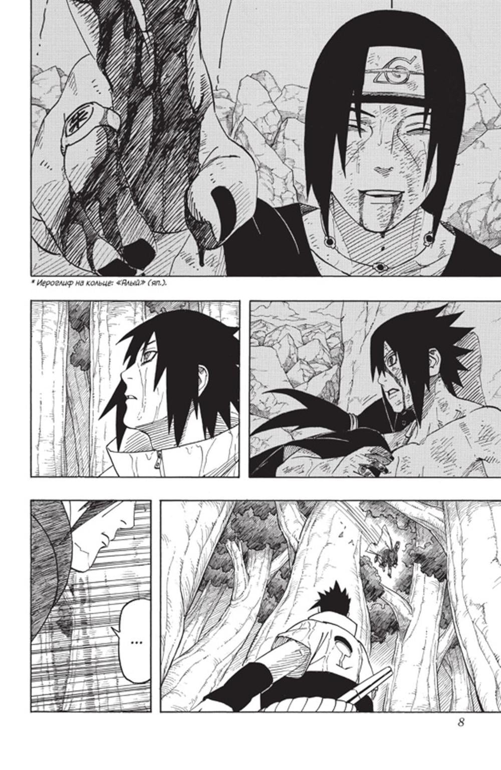Итати отправляется в логово Кабуто, чтобы заставить того отменить действие техники «Возрождение в бренном мире», но по пути случайно попадается на глаза Саскэ. Младший Утиха тут же пускается вслед за братом, желая получить ответы на давно мучившие его вопросы. Итати соглашается на честный разговор при условии, что сначала они одолеют Кабуто. Однако братья и не догадываются, что их враг овладел силой отшельников! Тем временем кагэ сходятся в бою с воскресшим Мадарой. Казалось бы, пять против одного - итог битвы очевиден. Вот только, когда в соперниках величайший ниндзя в истории, даже лидеры деревень синоби начинают сомневаться в собственном превосходстве...