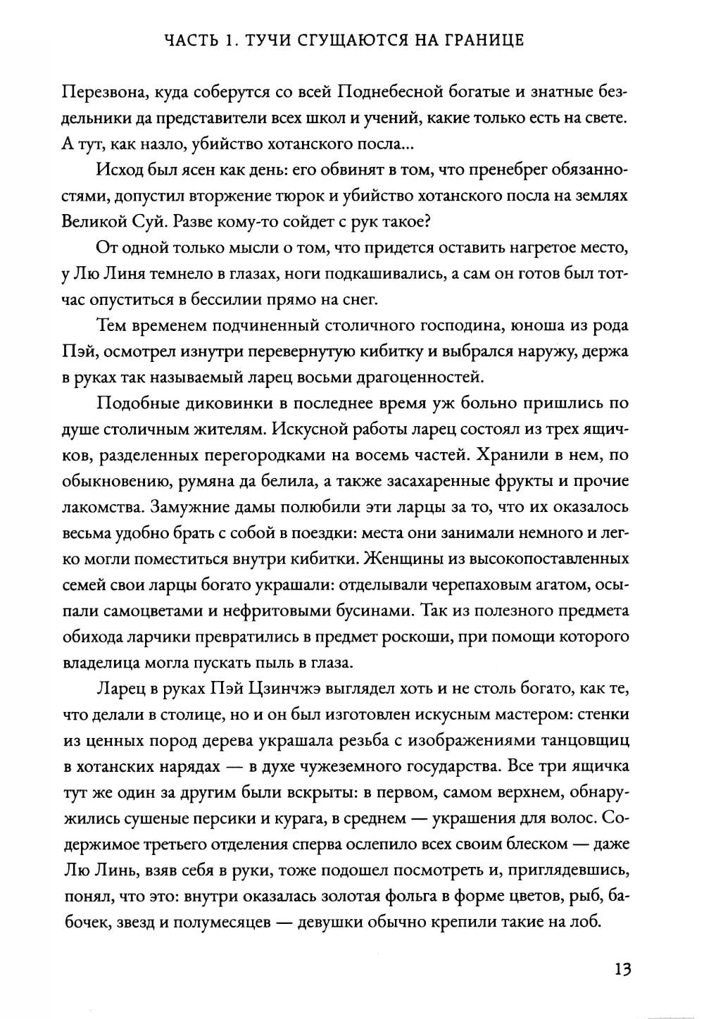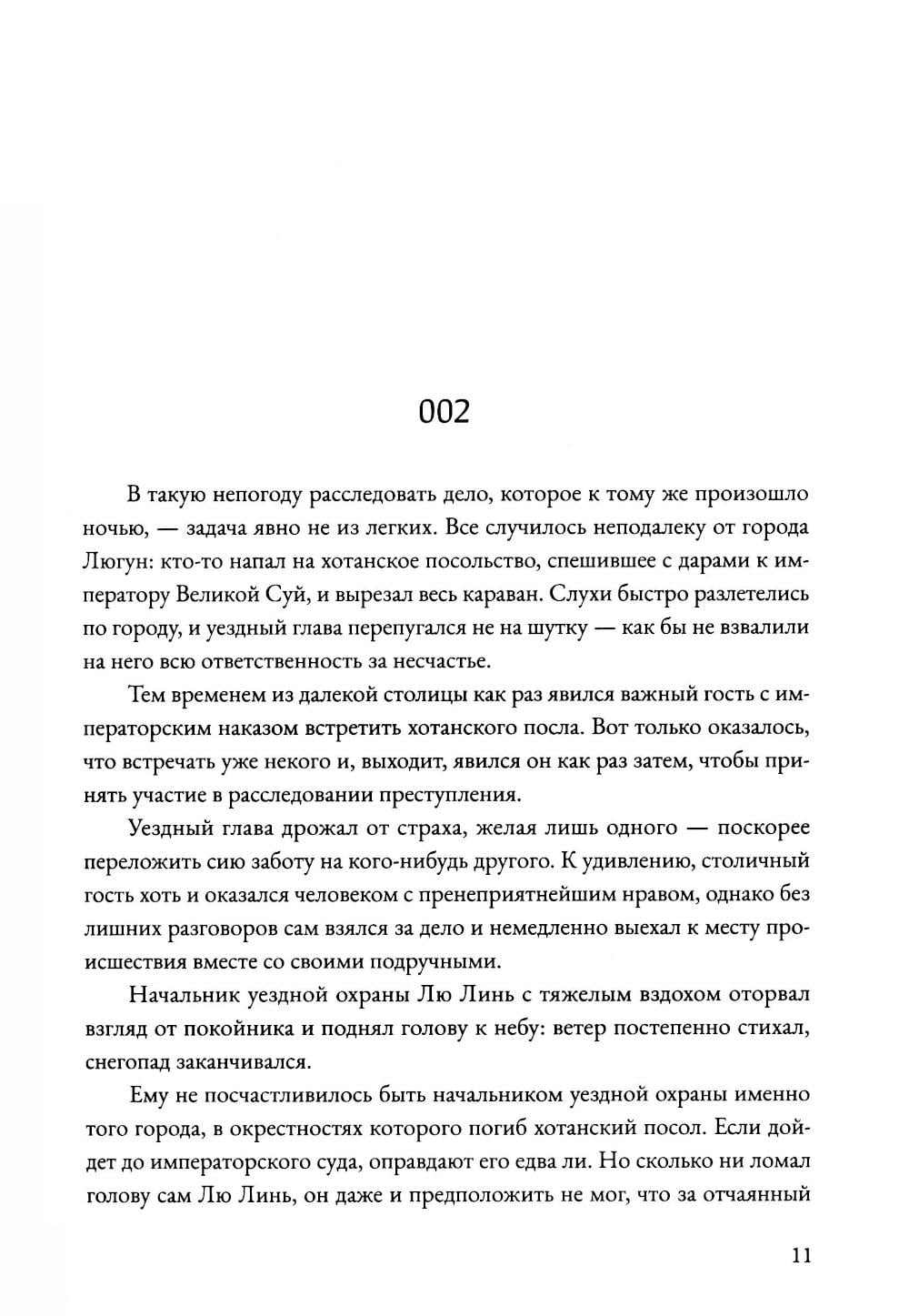 Начало правления династии Суй, вторая половина VI века. Государство Хотан отправляет к новому императору посольство. В качестве дара везут редчайший драгоценный камень - нефрит Небесного озера. Вскоре на обоз нападают, посол со свитой гибнут, а нефрит Небесного озера исчезает вместе с наложницей. Чтобы расследовать это крайне запутанное дело, в городок Люгун прибывает Фэн Сяо, второй господин чертога Явленных Мечей, тайной службы, повинующейся лично императору. Череда загадок приводит его к подозрительному даосу Цуй Буцюю, который якобы занят возрождением своей захудалой обители. Он слаб здоровьем, но отличается редкостной проницательностью. У каждого свои чаяния и замыслы, оба совершенно разные, но, дабы узнать, что сталось с нефритом Небесного озера, им придется забыть о разногласиях и объединить усилия.| Издательство | ЭксЭл Медиа |