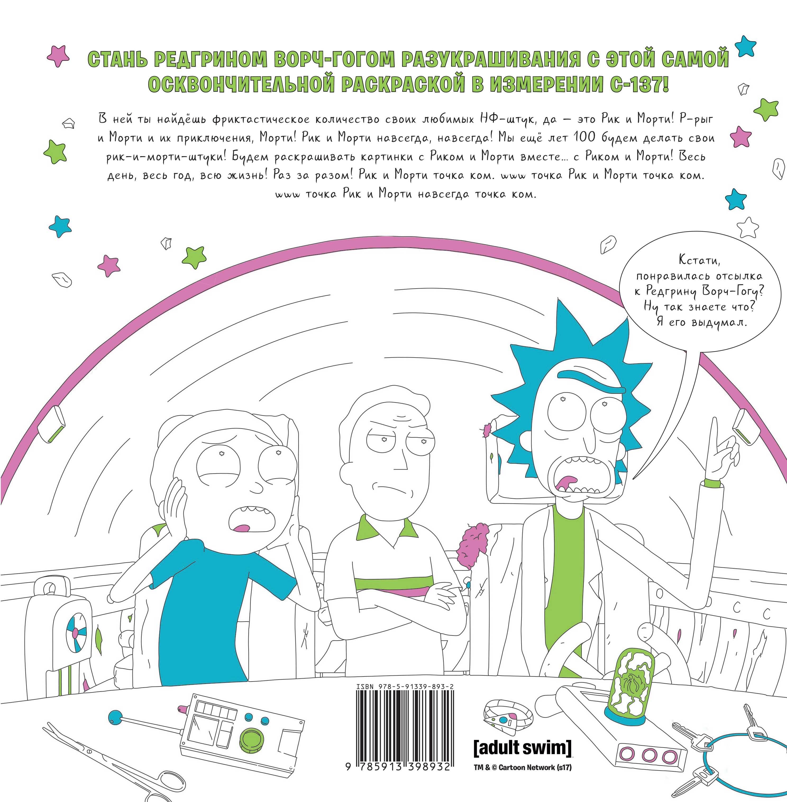 Стань Редгрином Ворч-Гогом разукрашивания с этой самой осквончительной раскраской в измерении С-137! В ней ты найдёшь фриктастическое количество своих любимых НФ-штук, да - это Рик и Морти! Р-рыг и Морти и их приключения, Морти! Рик и Морти навсегда, навсегда! Мы ещё лет 100 будем делать свои рик-и-морти-штуки! Будем раскрашивать картинки с Риком и Морти вместе… с Риком и Морти! Весь день, весь год, всю жизнь! Раз за разом! Рик и Морти точка ком. www точка Рик и Морти точка ком. www точка Рик и Морти навсегда точка ком.