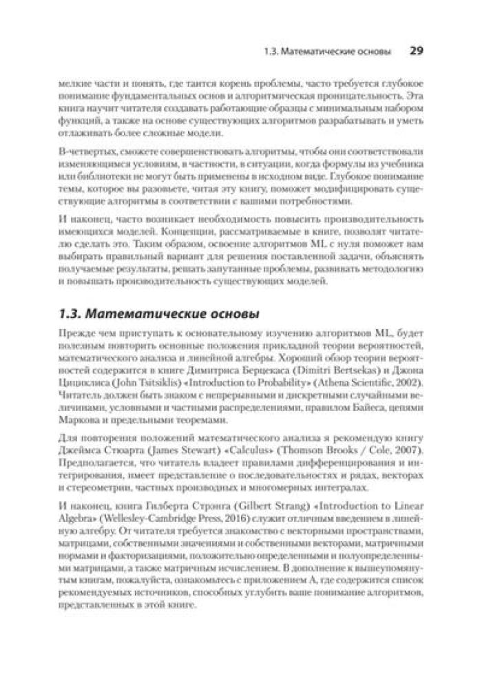 Узнайте тонкости работы алгоритмов ML, чтобы эффективно решать задачи и повышать производительность используемых моделей. Познакомьтесь с фундаментальными математическими основами важнейших алгоритмов машинного обучения и вариантами их реализации на Python. Особое внимание уделяется вероятностным методам. В книге анализируются и объясняются десятки алгоритмов, применяемых в различных сферах, в частности, финансах, компьютерном зрении и обработке естественного языка. Каждый алгоритм сначала выводится математически, а потом иллюстрируется кодом на Python, снабженным подробными пояснениями и информативными графиками. Особую ценность представляет данная автором ясная интерпретация байесовских алгоритмов для моделей Монте-Карло и марковских цепей.| Издательство | Питер |