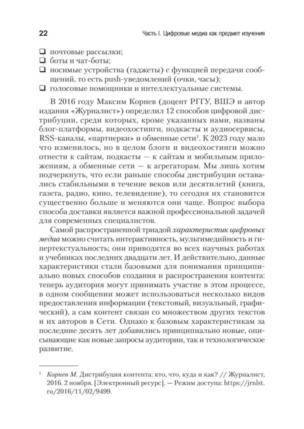 В учебнике представлен материал по современной практике цифровых медиа: основные понятия и категории, типология и теоретические основания понимания цифровых медиа; практические вопросы производства и распространения контента в цифровых медиа; этические и технологические аспекты будущего развития цифровых медиа. Учебник предназначен для студентов высших учебных заведений, учащихся средних и профессиональных общеобразовательных учреждений, занимающихся созданием материалов для цифровых медиа.| Издательство | Питер |