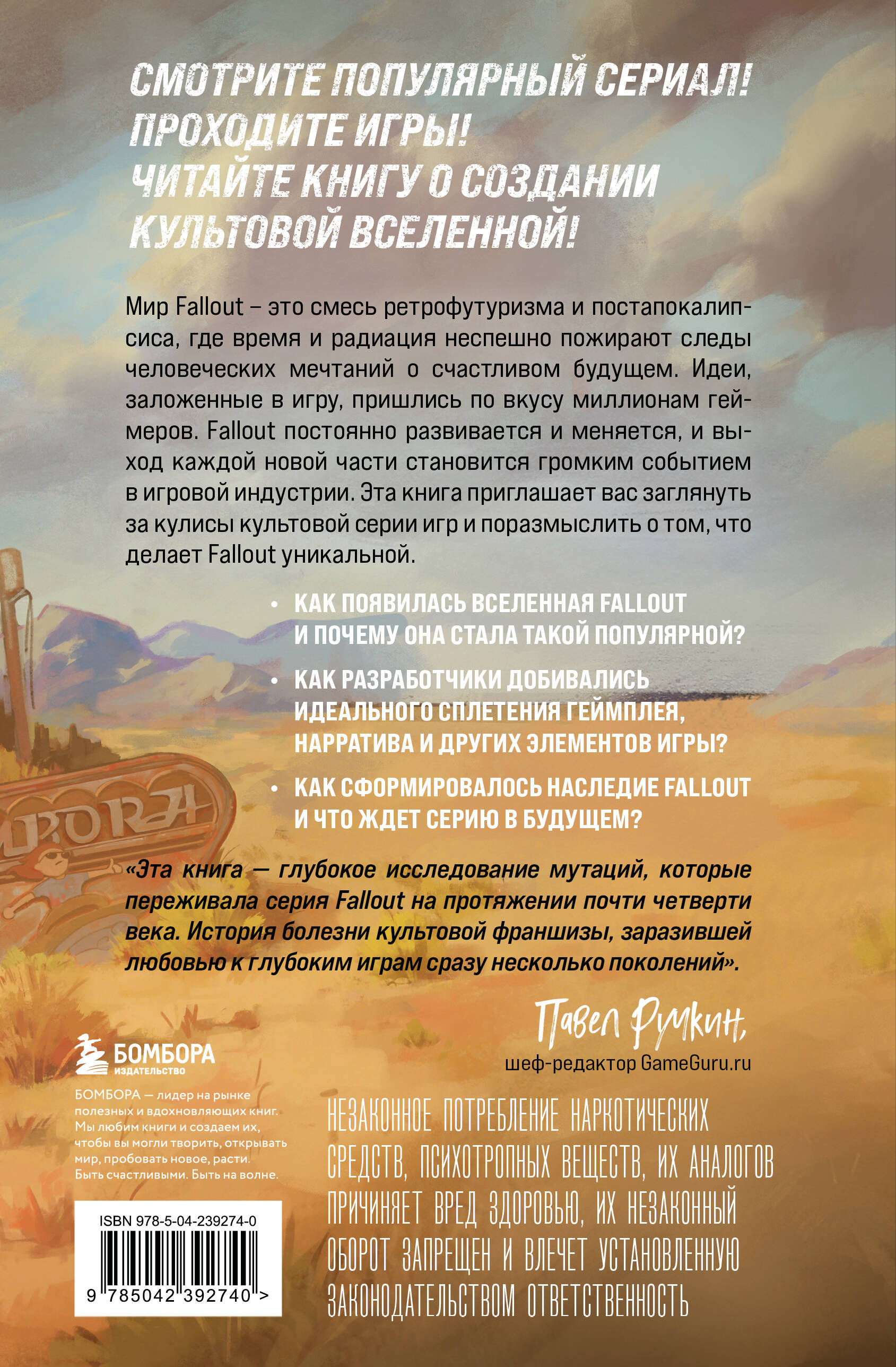 НЕЗАКОННОЕ ПОТРЕБЛЕНИЕ НАРКОТИЧЕСКИХ СРЕДСТВ, ПСИХОТРОПНЫХ ВЕЩЕСТВ, ИХ АНАЛОГОВ ПРИЧИНЯЕТ ВРЕД ЗДОРОВЬЮ, ИХ НЕЗАКОННЫЙ ОБОРОТ ЗАПРЕЩЕН И ВЛЕЧЕТ УСТАНОВЛЕННУЮ ЗАКОНОДАТЕЛЬСТВОМ ОТВЕТСТВЕННОСТЬ. От хаоса Пустошей к великой игре! Мир Fallout - это смесь ретро-футуризма и постапокалипсиса, где время и радиация неспешно пожирают следы человеческих мечтаний о счастливом будущем. Идеи, заложенные в игру, пришлись по вкусу миллионам геймеров. Fallout постоянно развивается и меняется, и выход каждой новой части становится громким событием в игровой индустрии. Эта книга приглашает вас заглянуть за кулисы культовой серии игр и поразмыслить о том, что делает Fallout уникальной. - Как появилась вселенная Fallout и почему она стала такой популярной? - Как разработчики добивались идеального сплетения геймплея, нарратива и других элементов игры, чтобы игроки не смогли оторваться? - Как сформировалось наследие Fallout и что ждет серию в будущем? «Я горжусь своей связью с такой культовой игрой, как Fallout, - игрой, вместе с которой фанаты росли и открывали для себя другой мир». - Брайан Фарго, сооснователь Interplay Entertainment| Издательство | ООО "Издательство "Эксмо" |