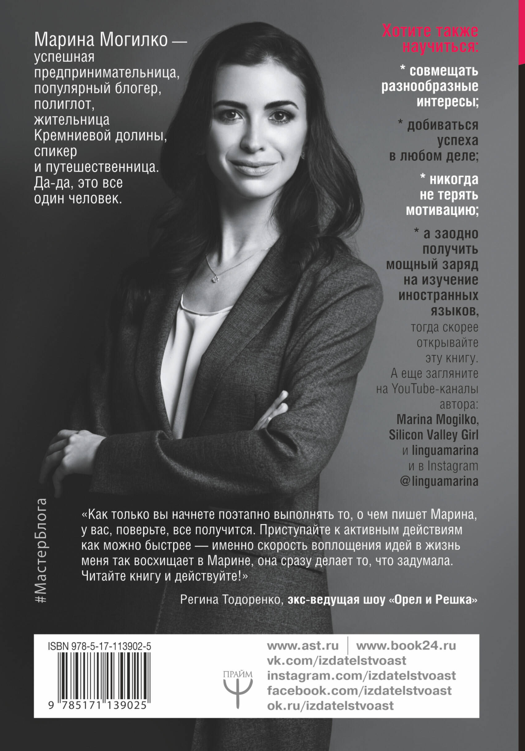 Хорошее знание английского - это не просто ваше конкурентное преимущество в борьбе за успех, это мощный инструмент, который откроет вам целый мир возможностей. Благодаря английскому языку любое ваше начинание тут же примет планетарные масштабы! Нужно только правильно распорядиться этими возможностями. История автора этой книги Марины Могилко тому подтверждение. Марина - сооснователь многомиллионного стартапа, популярный блогер и неутомимая "достигательница" любых целей - обязана этому бесконечной любовью к английскому и полной отдаче любимым делам. У каждого из вас свои желания, но любое из них осуществить в разы проще, если в вас есть любовь к иностранному языку и стремление меняться, - и то, и другое вы найдете в этой книге.| Издательство | ИЗДАТЕЛЬСТВО "АСТ" |