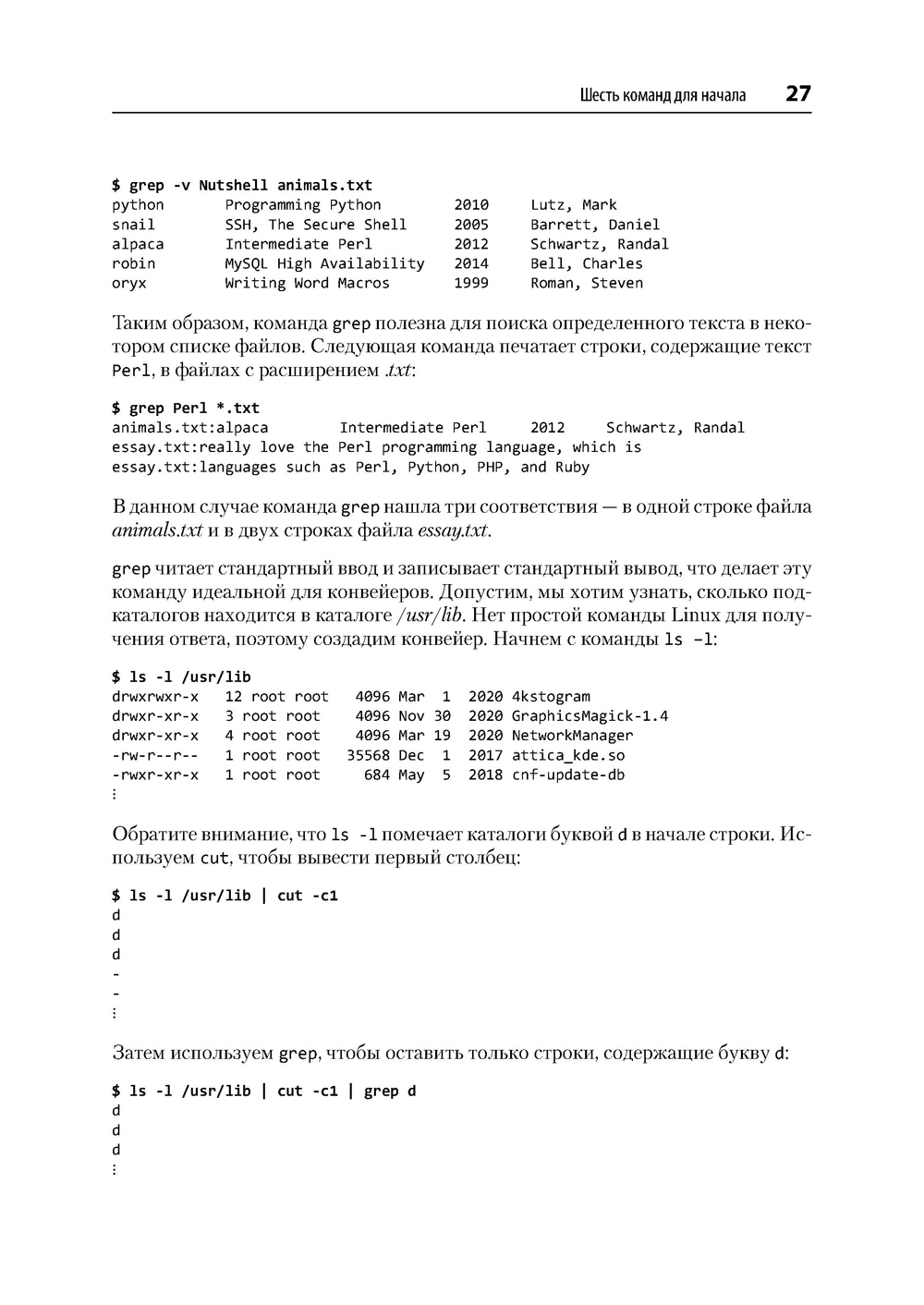 Перейдите на новый уровень работы в Linux! Если вы системный администратор, разработчик программного обеспечения, SRE-инженер или пользователь Linux, книга поможет вам работать быстрее, элегантнее и эффективнее. Вы научитесь создавать и запускать сложные команды, которые решают реальные бизнес-задачи, обрабатывать и извлекать информацию, а также автоматизировать ручную работу. Узнайте, что происходит внутри командной оболочки Linux. Вне зависимости от используемых команд вы повысите эффективность работы в Linux и станете более конкурентоспособным специалистом.| Издательство | Питер |