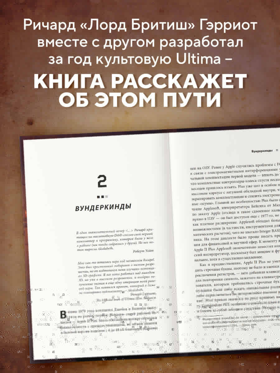 Ричард «Лорд Бритиш» Гэрриот - один из самых известных пионеров игровой индустрии. Разработанная им серия ролевых игр Ultima совершила настоящую революцию среди видеоигр и приковала к компьютерам миллионы людей. В 1983 году Гэрриот стал соучредителем компании Origin Systems Inc., которая продолжила выпускать на рынок культовые игры. Андреа Контато проследил историю легендарного разработчика от детства и юности до пика карьеры. На страницах книги он увлекательно расскажет о жизни Гэрриота, его творческом пути, его отношениях с важными для него людьми и, конечно, о том, как рождалась знаменитая серия Ultima. Вы узнаете: • Как и почему Гэрриот начал программировать и создавать игры? • Чем отличались друг от друга части франшизы Ultima? • Как была основана компания Origin Systems Inc. и кто в ней состоял? • Чем увлекался Ричард Гэрриот и как это повлияло на его игры? «Эта книга - лучшее, что случалось с литературой о старых играх. Так подробно и интересно про "Ультиму" никто не писал и вряд ли напишет. Если вам интересны игры из тех самых далеких времен, то эта книга максимально обязательна к ознакомлению». - Бэбэй, ютуб-блогер| Издательство | ООО "Издательство "Эксмо" |