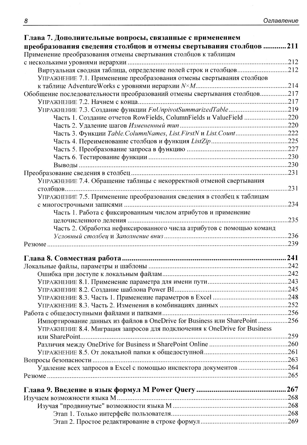 В книге описан Power Query, инструмент для продвинутого бизнес-анализа, встроенный в Excel, Power BI и другие продукты Microsoft и предназначенный для подключения к источникам данных и их преобразования. Рассказано, как обрабатывать таблицы Excel без использования сложных формул и макросов, выбирать данные из нескольких источников, объединять несовпадающие таблицы, сохранять контекст при формировании запросов. Особое внимание уделено базовым и продвинутым методам отмены свертывания столбцов (Unpivot) и совместной работе над отчетами. Дано введение в язык формул М и показано, как правильно формировать запросы, избегая сбоев и «ловушек». Рассмотрены вопросы текстовой аналитики и извлечения знаний из текстов, а также аналитики социальных сетей. В конце книги приведен заключительный проект, объединяющий и закрепляющий полученные навыки.| Издательство | BHV(БХВ) |