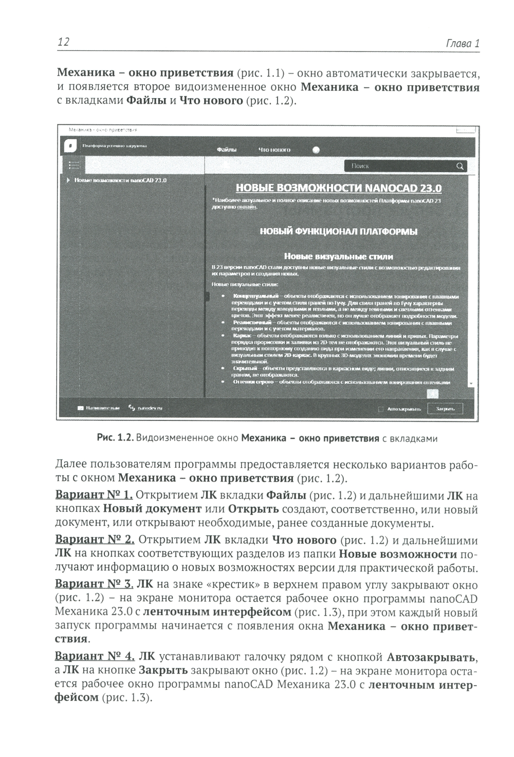 В учебном пособии применительно к учебному процессу рассмотрены новые возможности Платформы nanoCAD с модулями "Механика" и "3D". Содержание учебного пособия соответствует актуальным требованиям Федерального государственного образовательного стандарта высшего образования. Оно предназначено для самостоятельной работы студентов, обучающихся по укрупненной группе специальностей и направлений подготовки "Инженерное дело, технологии и технические науки".