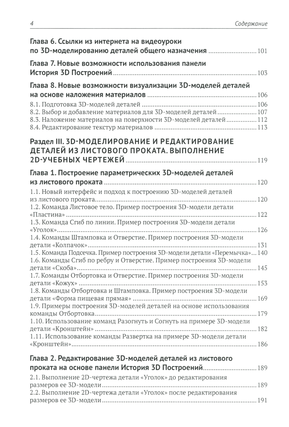 Рассмотрены самые востребованные и необходимые методы 3D- и 2D-моделирования. Показаны перспективы использования компьютерной графики при выполнении деталей и сорочных чертежей по современной технологии "3В-модель - 2D-модель - 2D-чертеж". Приведены ссылки на видеоуроки, позволяющие пользователям пополнить знания дополнительными сведениями и использовать их в работе.