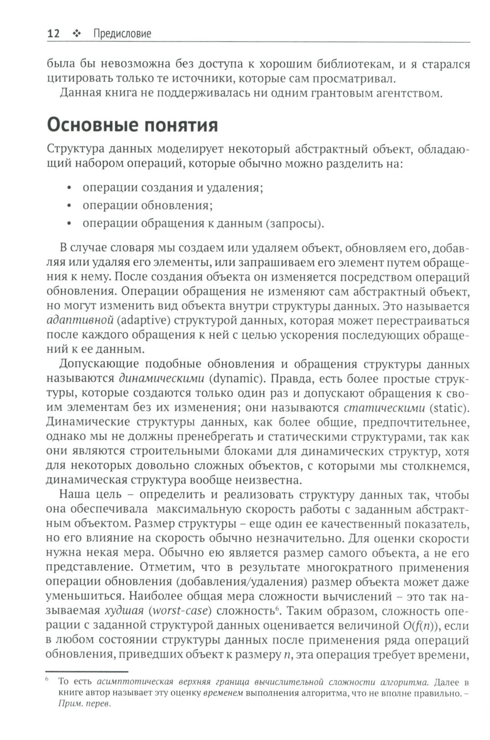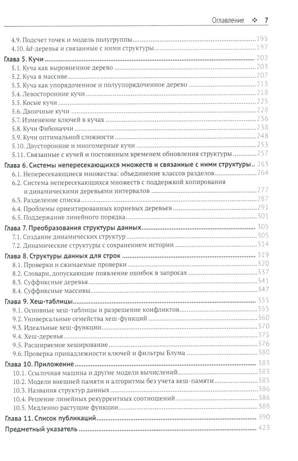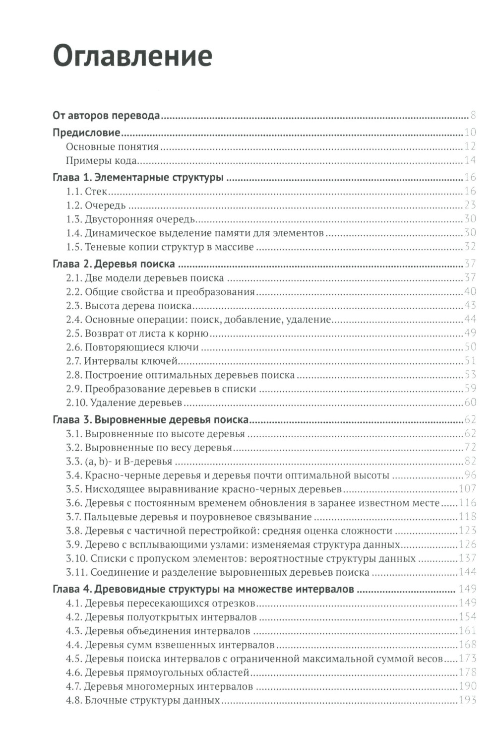 В книге приводится всесторонний анализ идей и деталей реализации структур данных как важнейшей составляющей прикладных алгоритмов. Рассматриваются не только эффективные способы реализации операций над множествами чисел, интервалов или строк в виде различных поисковых структур данных - деревьев, множеств интервалов, кусочно-постоянных функций, прямоугольных областей, непересекающихся подмножеств, куч, хеш-таблиц, но и динамизация и персистентность (сохраняемость) структур.